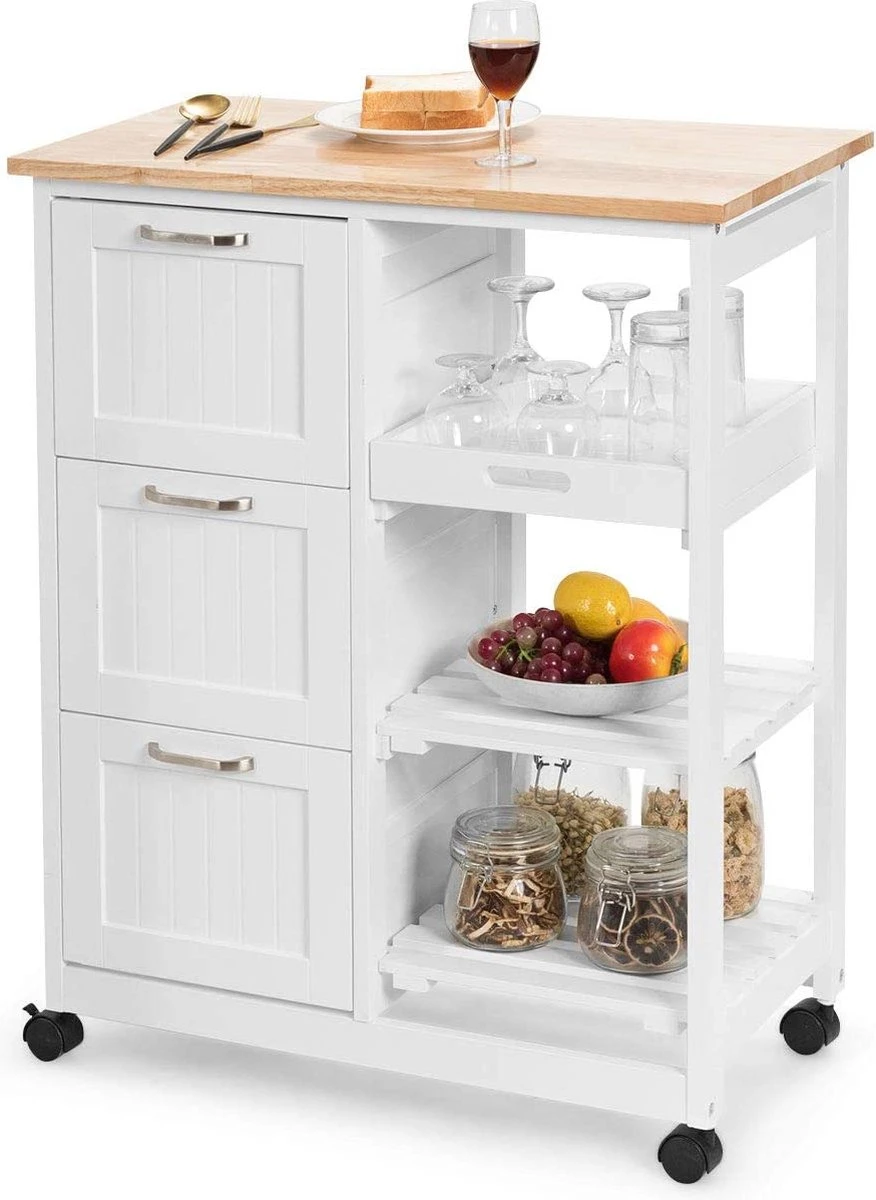 - 【Voldoende opbergruimte】Met een breed werkblad, deze kar biedt ruime voedsel bereidingsoppervlak voor u. 3 grote lades houden wat keukengerei, zilverwerk en glaswerk in een afgesloten ruimte om veilig te blijven. En het is ontworpen met een lade en 2 laags open planken om u te helpen de keuken georganiseerd.