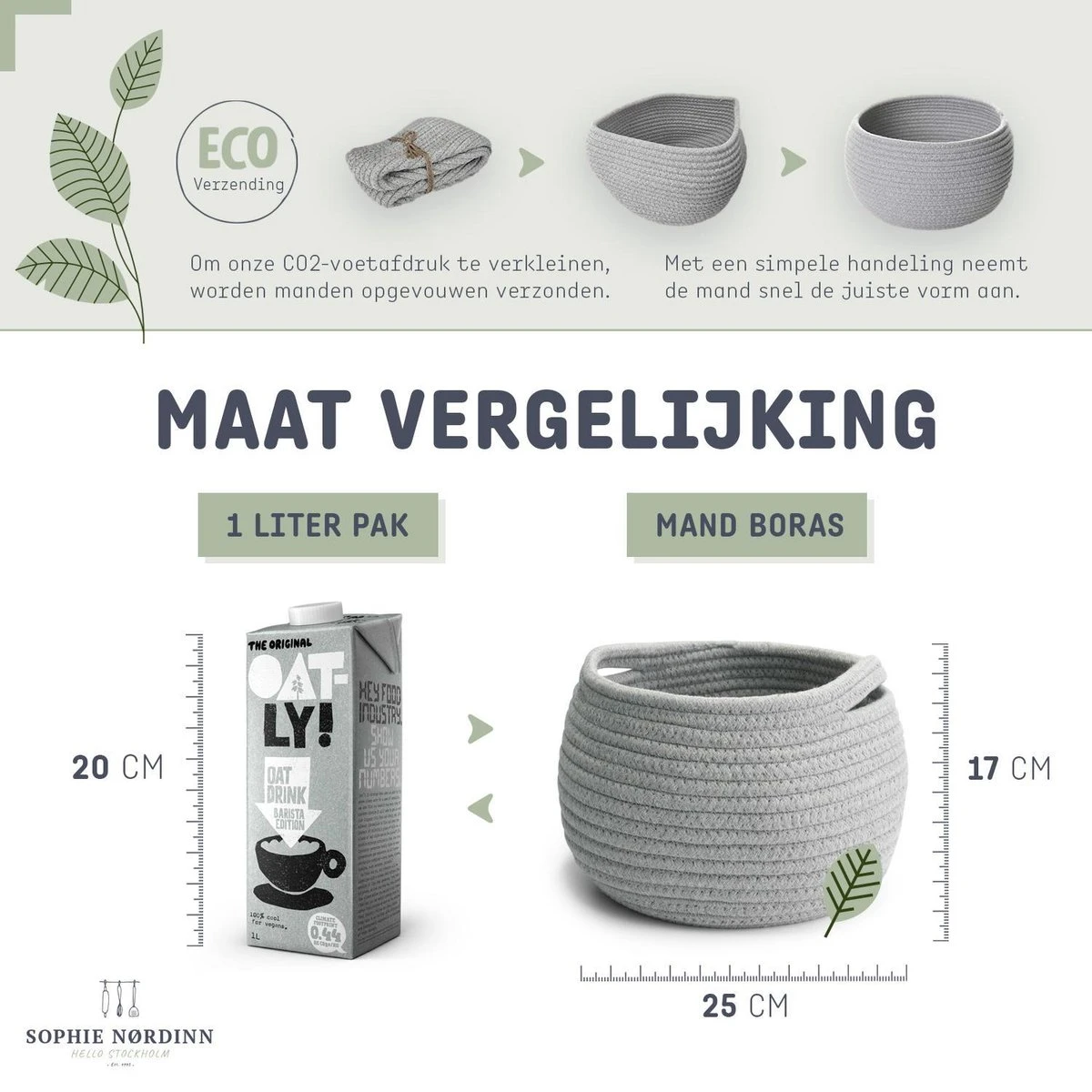 Mand Van Sophie Nordinn® – Opbergmand Boras (Lichtgrijs) – Mandjes Opbergen – Milieuvriendelijk Manden – Katoen