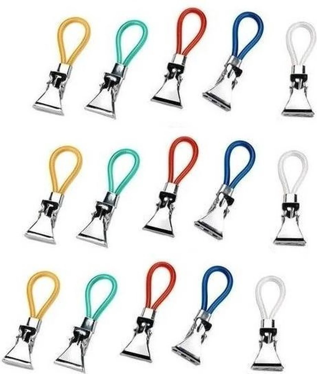 15x gekleurde handdoekhaakjes / ophanghaakjes voor theedoek. Ideaal voor handdoeken zonder lusjes. Materiaal: metaal/ kunststof.