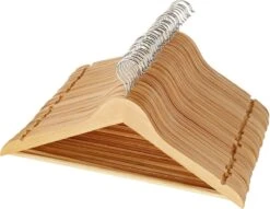Ga voor een opgeruimde en nette kast en kies voor deze mooi afgewerkte, houten kledinghangers. Met deze kledinghangers kan u eenvoudig kledingstukken ophangen. Ze hebben een zeer fijne afwerking en zijn multifunctioneel omdat ze uitgerust zijn met inkepingen, broeklat en een 360° draaibare haak.
