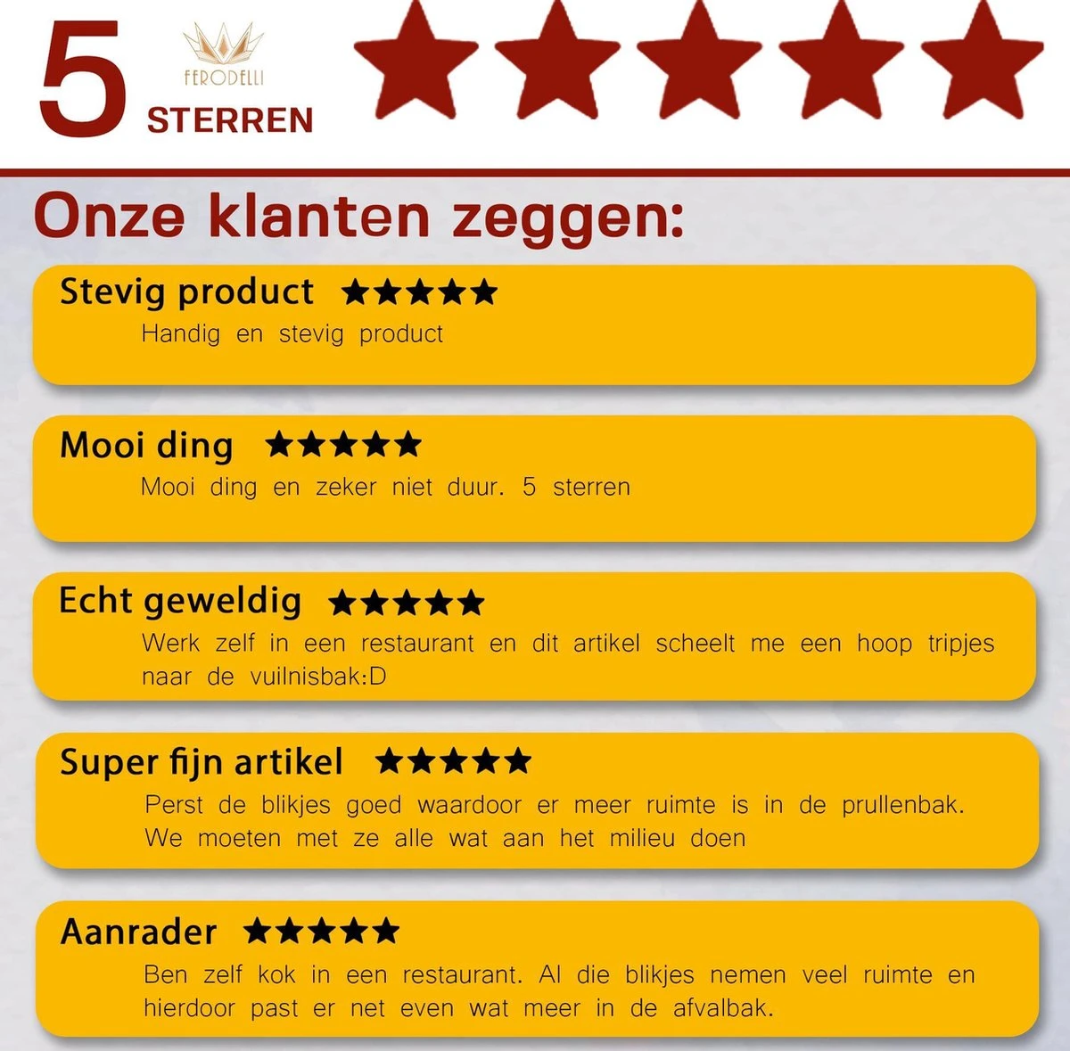 Bestel de Ferodelli® Blikpers vandaag nog en draag je steentje bij aan het milieu!