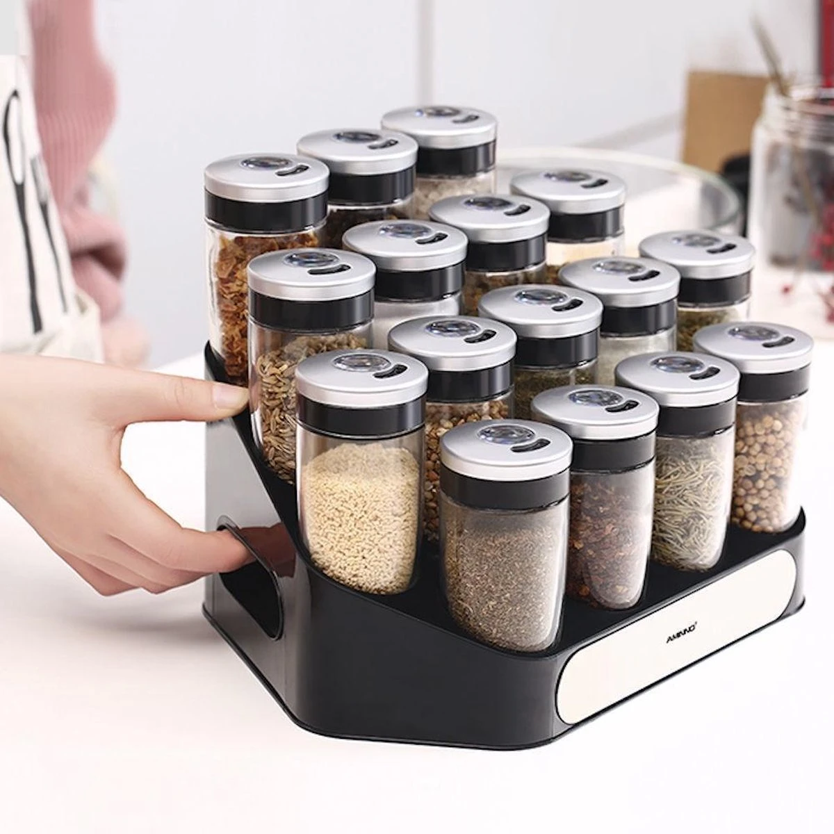 Houder inclusief: 16x specerijen potjes.