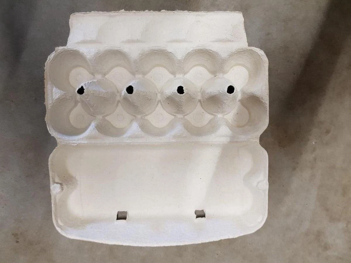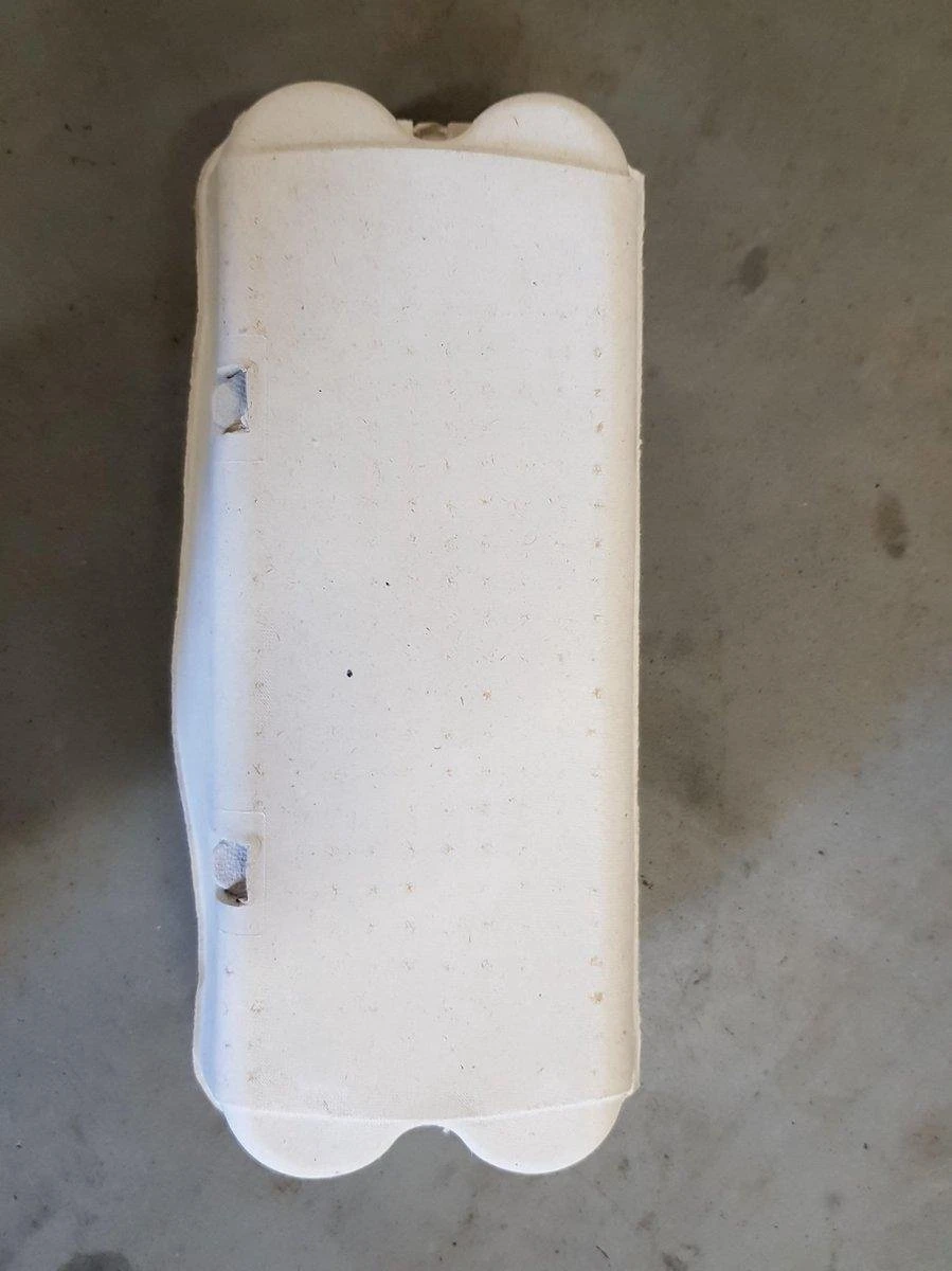 Deze eierdoos is gemaakt van pulp, dit is samengeperst karton.