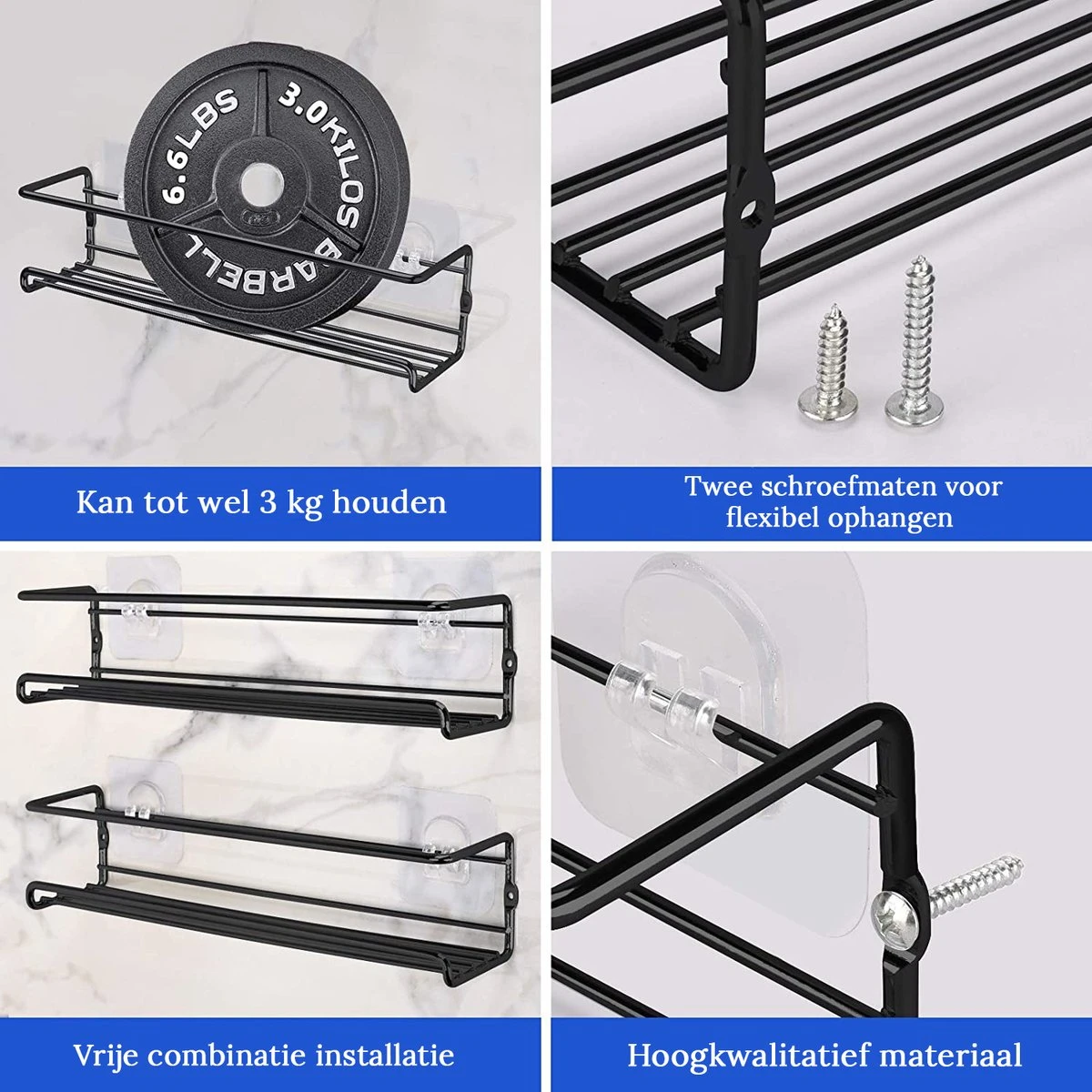 – U beslist: vier losse rekjes of slechts één kruidenrek? Deze vier aparte rekken voor kruiden maken het mogelijk. Hoeveel ruimte tussen de rekken? Hang ze samen of zover uit elkaar als je ze nodig hebt. Gebruik je ze als kruidenrek boven het fornuis, in de grote kast of als wandrek in de voorraadkast? Kies wat voor jou het beste werkt! Het monteren van de hangplank voor kruidenpotjes is in een handomdraai gedaan. Het ophangmateriaal wordt meegeleverd om de kruidenrekjes bijna overal te kunnen installeren. Stevig en gemaakt om lang mee te gaan: de kruidenopbergers voor aan de muur combineren duurzame materialen van topkwaliteit met een stijlvolle, rustieke uitstraling. De tijdloze moderne kruidenopberger past mooi in elk keukendecor. Het vinden van spullen in je voorraadkast wordt een fluitje van een cent met het ruimtebesparende kruidenrek. Pakket bestaat uit: Set van 4 rustieke zwarte kruidenrekken incl. montage en afwerk matriaal.