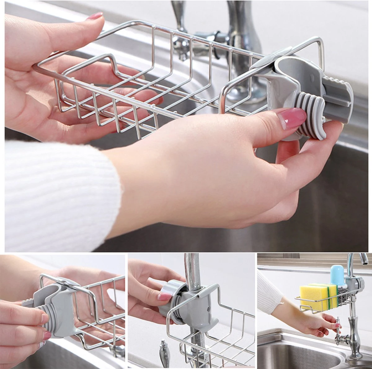Zijn je spons, borstel en wasmiddel altijd rommelig? Heeft u een ruimteprobleem in de keuken? Wil je niet overal gaten boren?