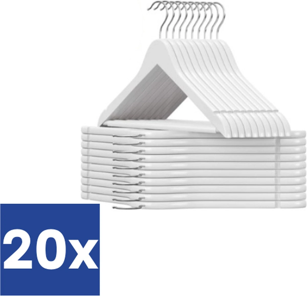 Ga voor een opgeruimde en nette kast en kies voor de houten kledinghangers van Wooners. Met deze kledinghangers kan u eenvoudig kledingstukken ophangen. Ze hebben een zeer fijne afwerking en zijn multifunctioneel omdat ze uitgerust zijn met inkepingen, broeklat en een 360° draaibare haak. Je kan de kledinghanger gebruiken voor het ophangen van broeken, fijne T-shirtjes of zware jassen.