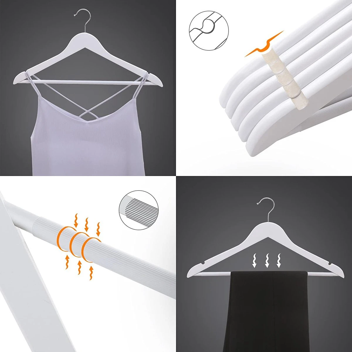 Stevig hout Wit Broeklat Inkeping Multifunctioneel 360° draaibare haak Geschikt voor: dameskleding, herenkleding, kinderkleding en accessoires