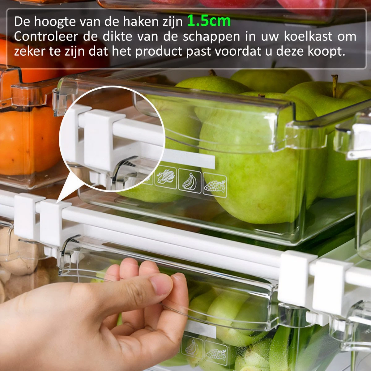 – Geschikt voor diverse producten: Het is perfect voor het organiseren van groenten, vlees, kaas, snacks en andere levensmiddelen in de koelkast.