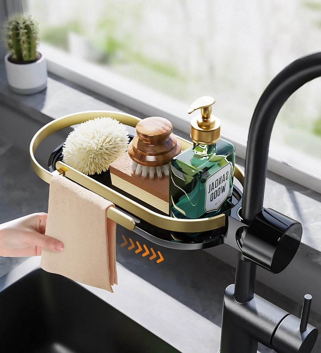 Is de spons, borstel en wasmiddel altijd rommelig? Heeft u een ruimteprobleem in de keuken? Niet altijd overal gaten boren, dan is deze kraan organizer de ideale oplossing voor in de keuken of badkamer.