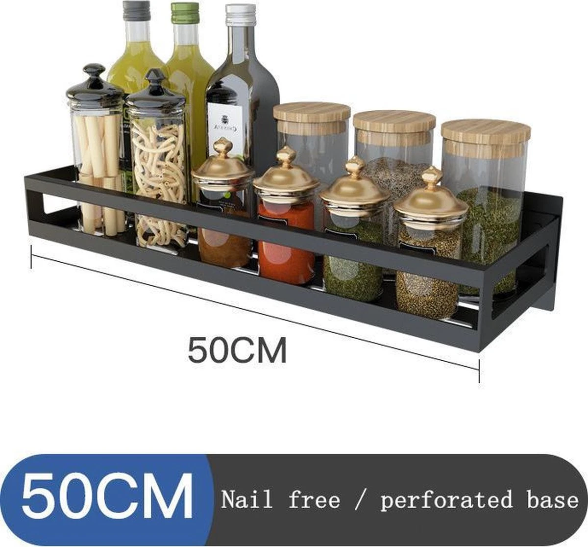 Merkloos Kruidenrek / Opbergrek – RVS – Perforatievrij Aan De Muur Gemonteerd – 50x13x6 Cm – Zwart