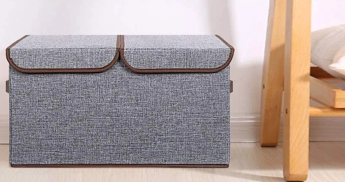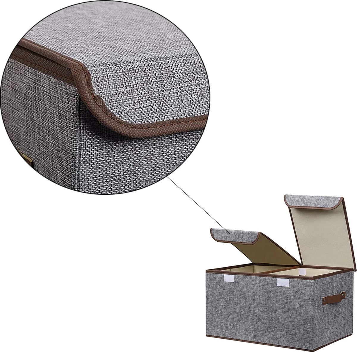 De opbergbox is gemaakt van kwalitatief textiel met hardboard karton. Hierdoor blijft de opbergbox erg goed in model en heeft hij een lange levensduur. De box is eenvoudig te sluiten met klittenband aan de klep.