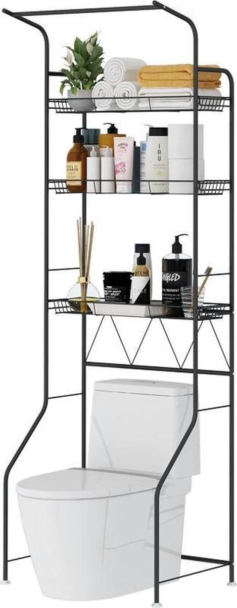 Deze metaal opbergrek bied met zijn 3 schappen ruimte voor het opbergen van uw wc-papier, tissues, wc verfrisser, handdoeken, shampoo/ zeep, wasmiddel, douche en toiletartikelen. Opbergrek past bijna bij elke toilet of wasmachine.