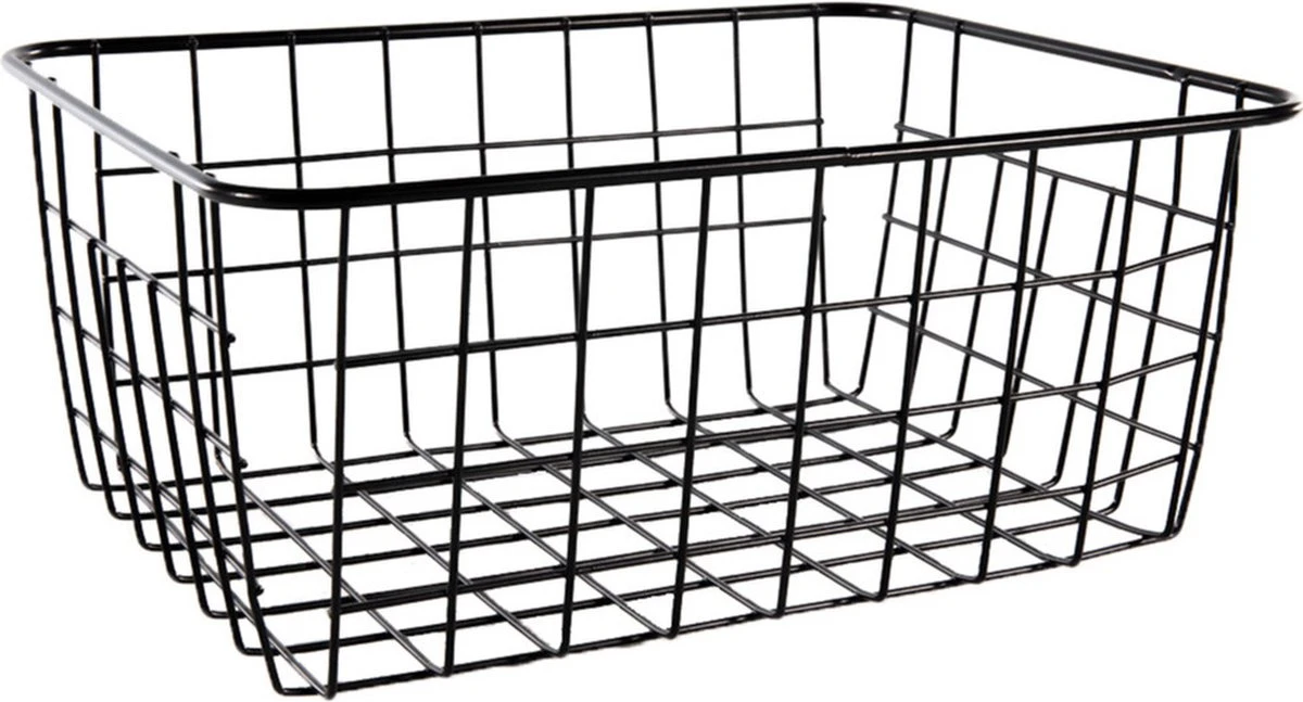 Set van 2x stuks industriele zwarte opbergmanden/draadmanden 18 x 24 x 10 cm. Multifunctionele rechthoekige mand, welke u kunt gebruiken in elke ruimte van het huis! U kunt er ondergoed en sokken in bewaren, speelgoed in bewaren of neerzetten ter decoratie met leuke accessoires er in. Ook ideaal voor gebruik in de voorraadkast. Met 2 geintegreerde handvaten.