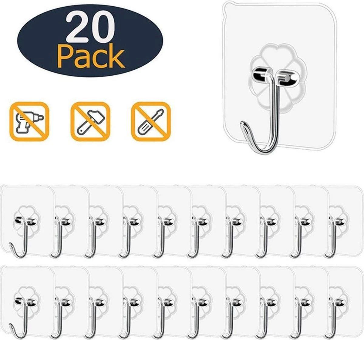 20 x Zelfklevende ophanghaakjes met roestvrij stalen haakjes,