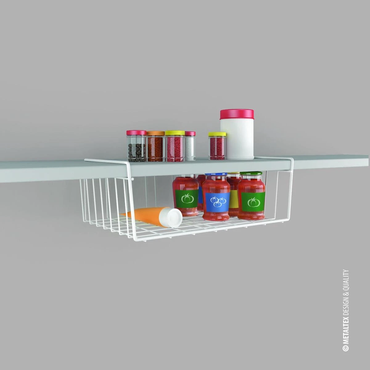 De 2 kasthangmanden Babette van Metaltex zijn ideaal om je spulletjes in op te bergen. Hij is ruimtebesparend en verdubbelt de ruimte in de kast. Je kunt hem zonder moeite ophangen door middel van de 2 armen. De Babettte is gemaakt van metaaldraad een gecoat met een sterke maar zachte LDPE (kunststof) coating.