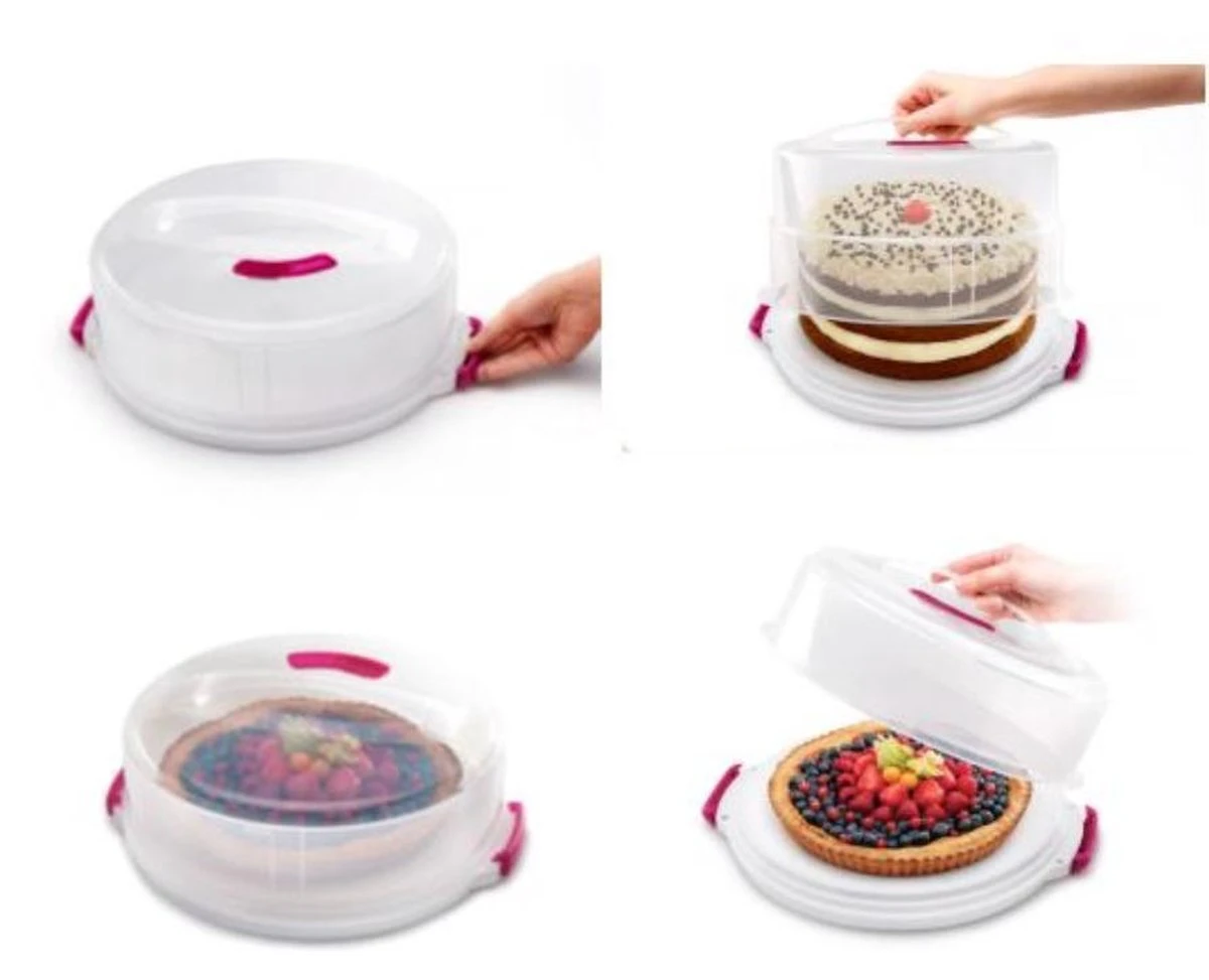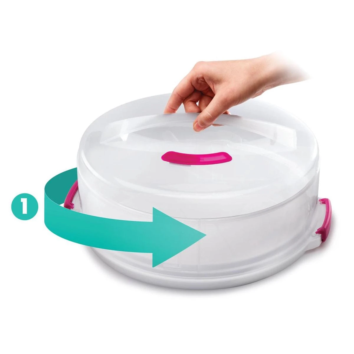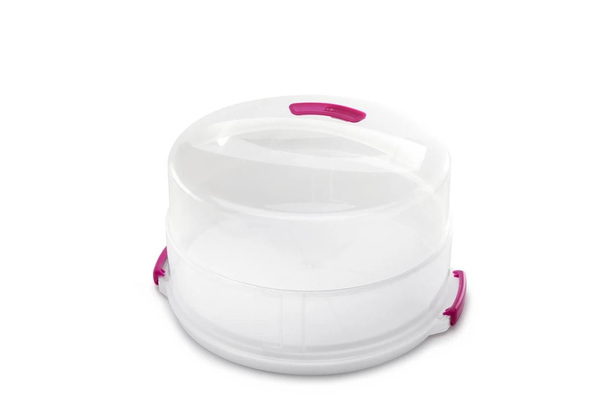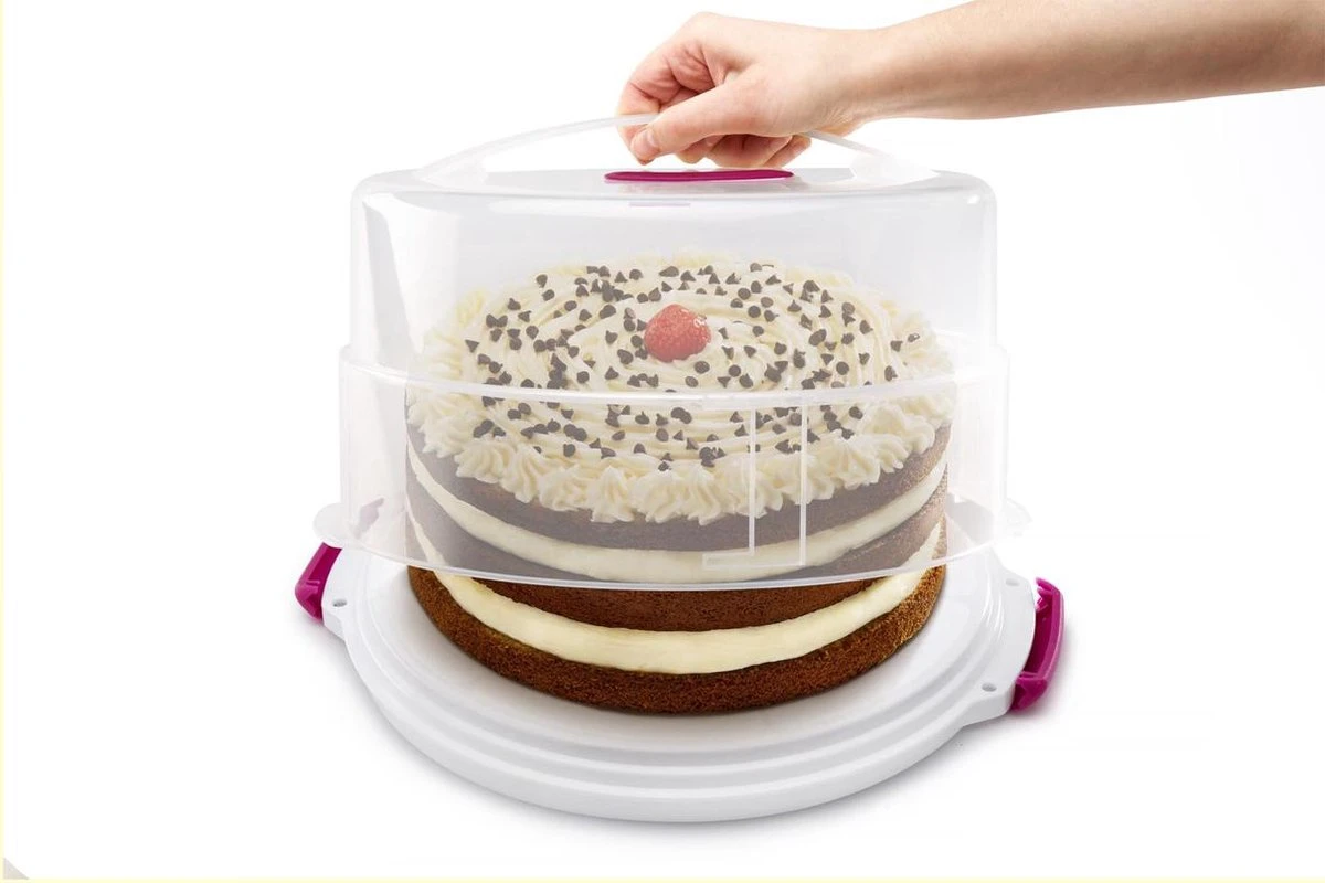 Metaltex Dolceforno Verstelbare vershouddoos voor taarten. De transparante taartdoos heeft een hoogte van 80mm en is verstelbaar tot een hoogte van 150mm. De diameter van de taartdoos is 36cm.
