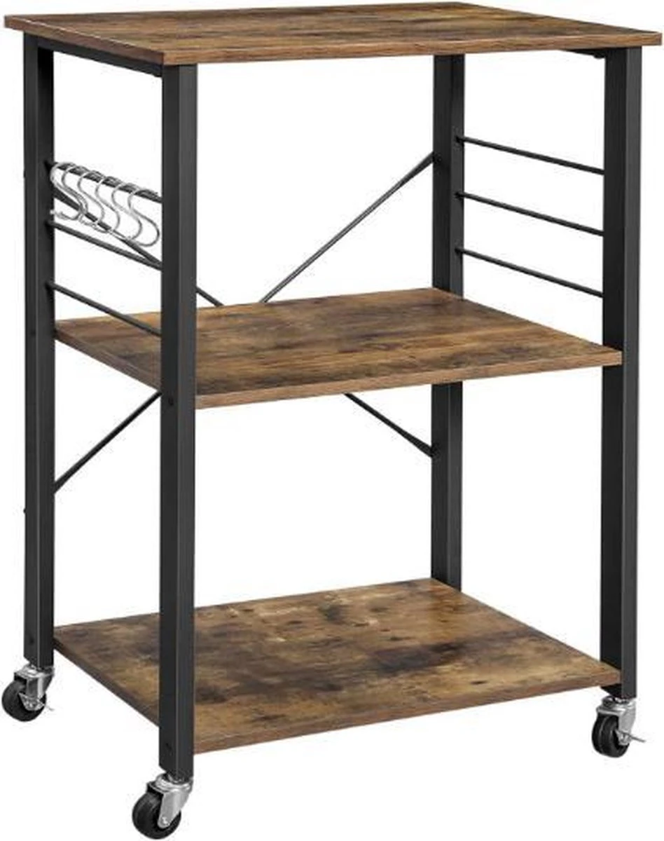 Als broodroosters en waterkokers naar de vloer moeten worden verplaatst om ruimte te maken, is het hoog tijd voor dit keukenrek. Zet je magnetron op het hoogste niveau. De onderste planken, op een afstand van 38 cm, zijn geschikt voor alle soorten keukengerei. De 6 S-vormige haken zijn perfect voor het ophangen van kooklepels of droge handdoeken.