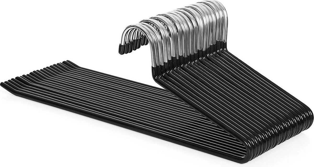 Fijn vakmanschap: Verchroomde metalen kleerhangers, roestbestendig, geschikt voor zowel droge als natte kleding.
