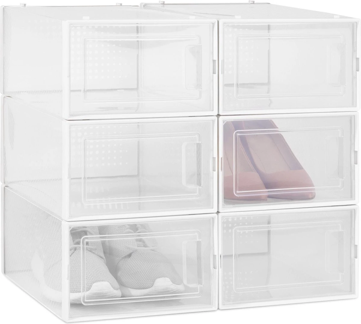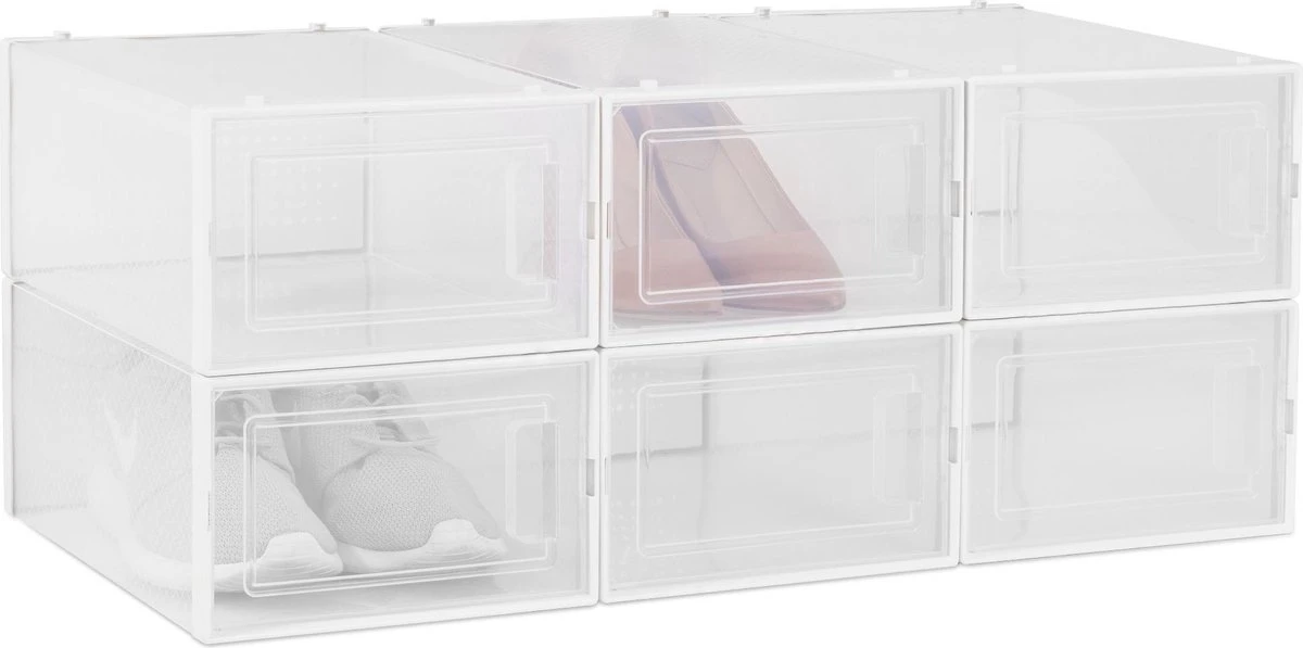 - PRAKTISCH: Omdat de opbergdozen doorzichtig zijn, zie je altijd welke schoenen in welke doos zitten. Zo kun je jouw schoenencollectie overzichtelijk opbergen en ordenen en heb je je favoriete schoen altijd binnen handbereik.