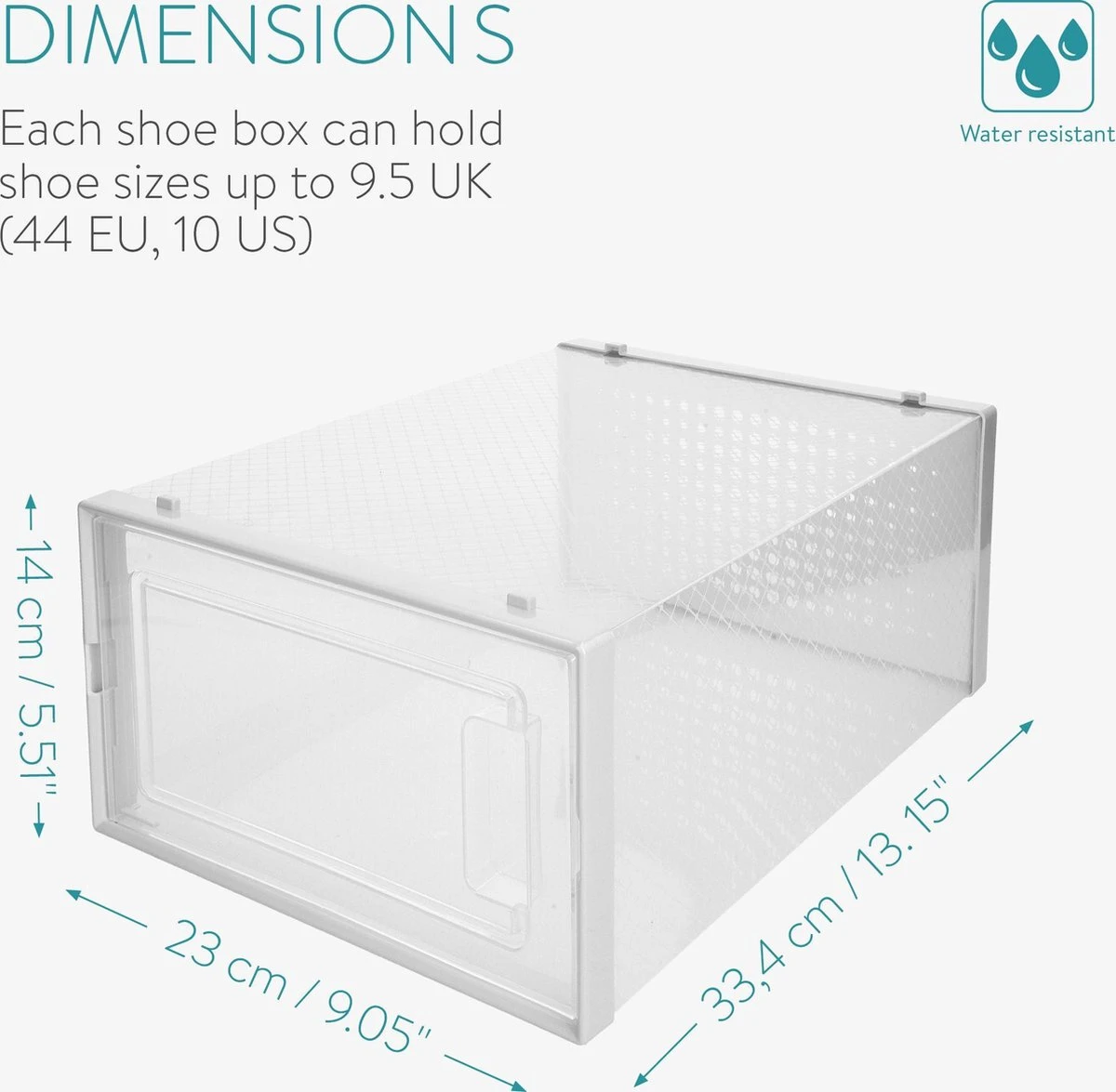- ULTIEME BESCHERMING: De duurzame, waterbestendige schoenenopbergdoos is ideaal om je schoenen op te bergen en ze te beschermen tegen stof, vocht en vuil.