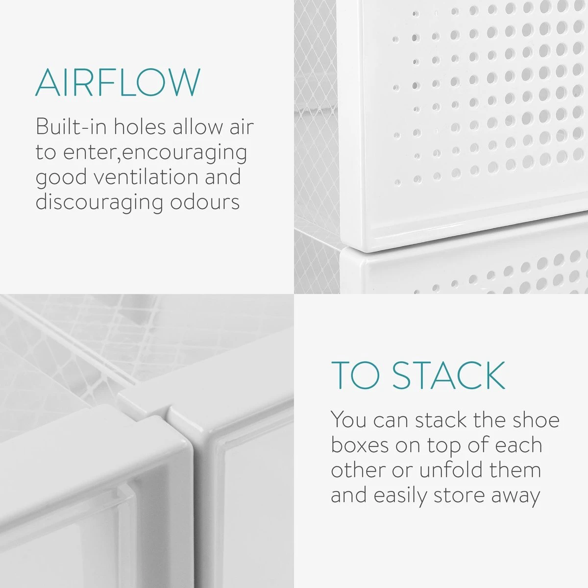 - VEELZIJDIG: Deze stapelbare schoenenboxen zijn niet alleen handig voor het opbergen van je al je schoenen. Je kunt de dozen ook gebruiken om kleding, speelgoed, gereedschap en andere accessoires in op te bergen.