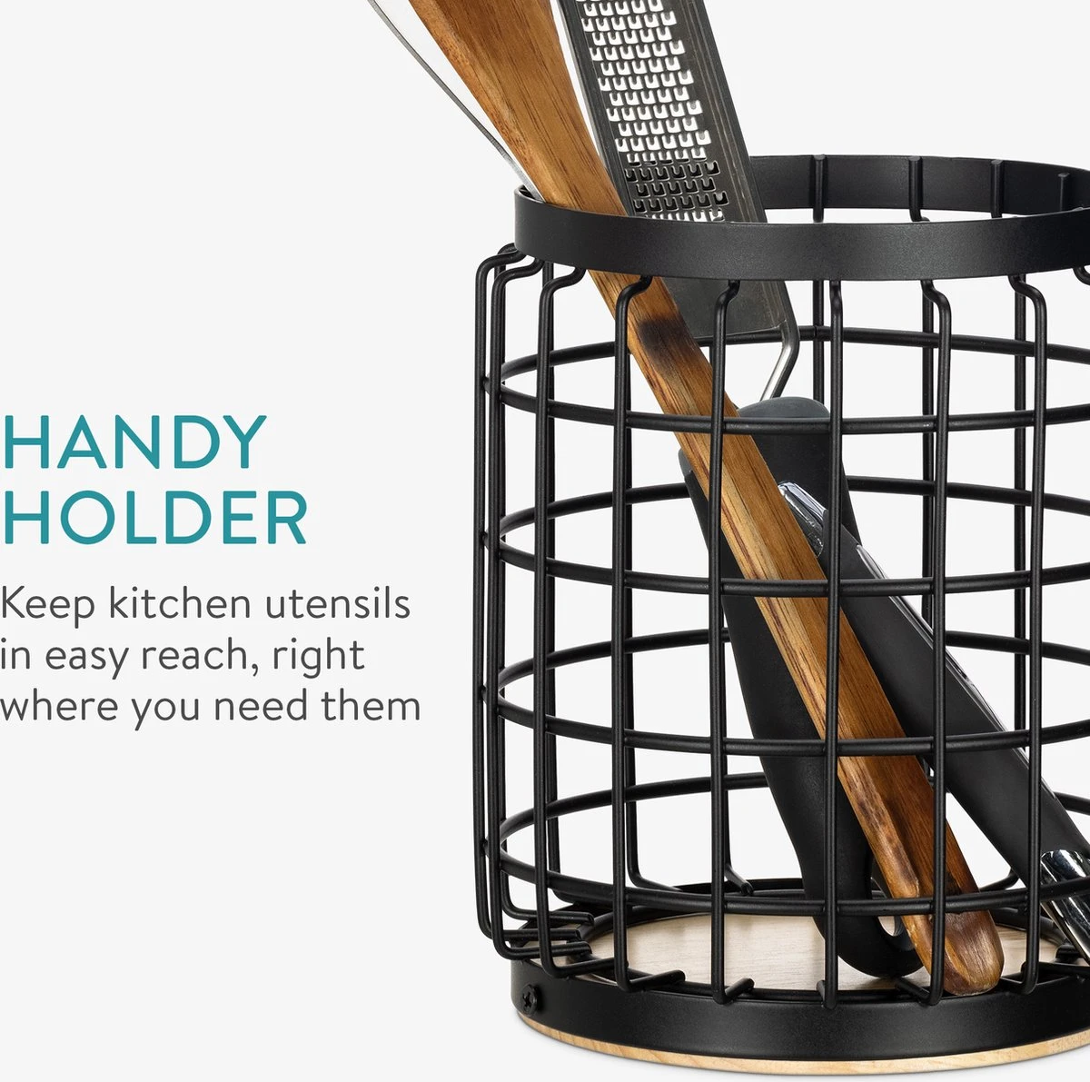 - KEUKENHULP: De zwarte keukengerei houder van Navaris brengt orde in de keuken. Of het nu als bestekmand of als lepelhouder is, met dit keukenaccessoire heb je steeds alles bij de hand.