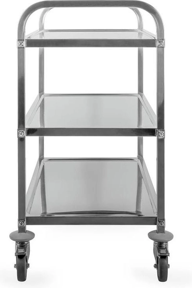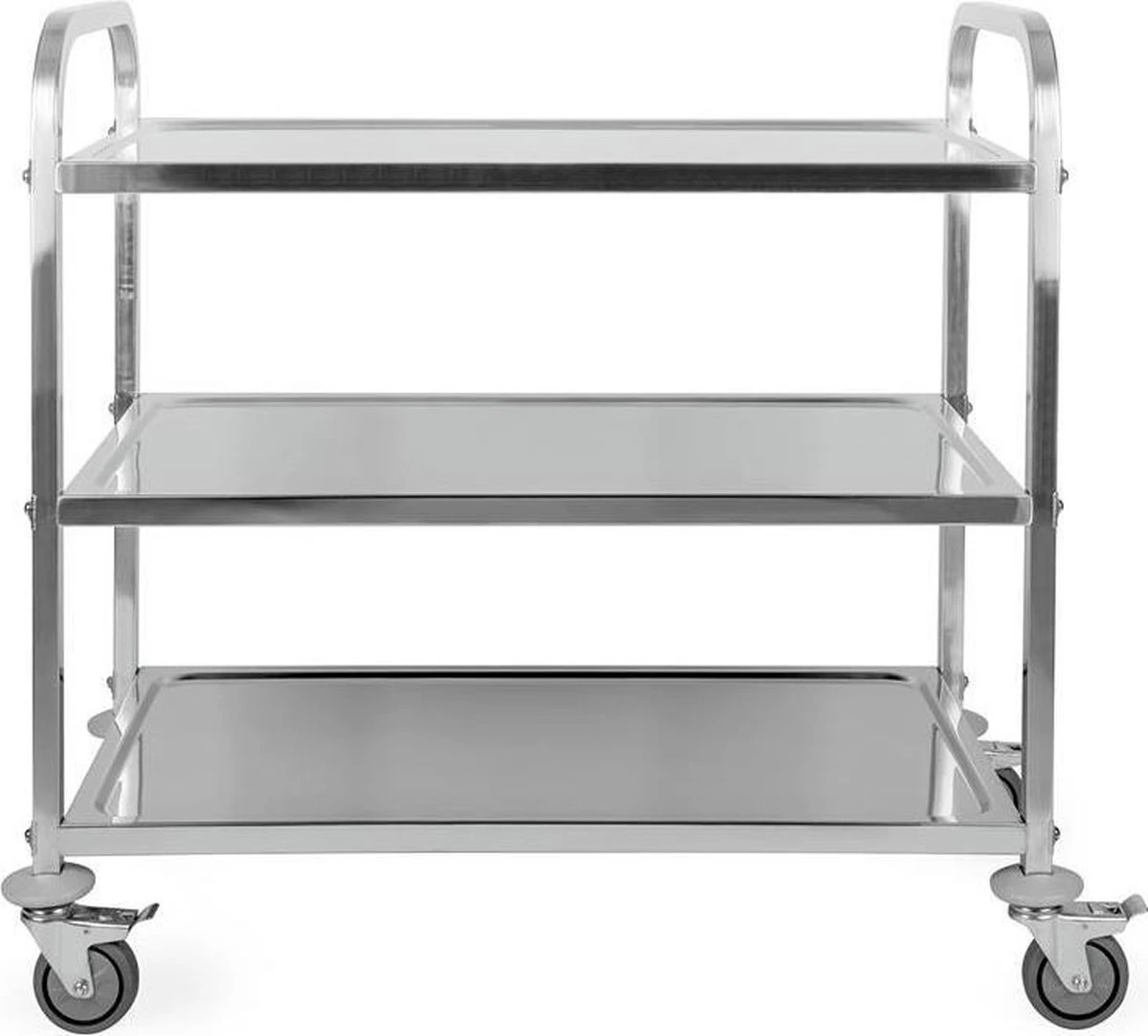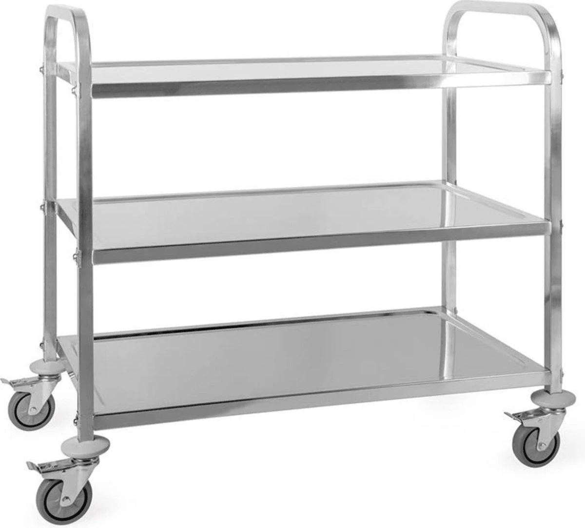 De “the Great Gatsby” serveerwagen van oneConcept met klassiek design en stabiele constructie heeft drie grote serveerbladen van 44 x 84 cm. De bladen hebben een licht gebogen rand die zorgvuldig eventueel druppelende vloeistoffen tegen houden. De 4 lichtlopende massief rubberen wielen met kogellagers zorgen voor een minimale rolweerstand en laten zich afzonderlijk met parkeerrem snel en vast fixeren. Met hun gewrichten, eveneens met kogellagers, is ieder wiel tot 360° draaibaar en biedt daardoor maximale wendbaarheid. Daarnaast zijn de wielen ook voorzien van een crashbescherming. De serveerwagen is gemakkelijk in elkaar te zetten met de bijgeleverde inbussleutel.