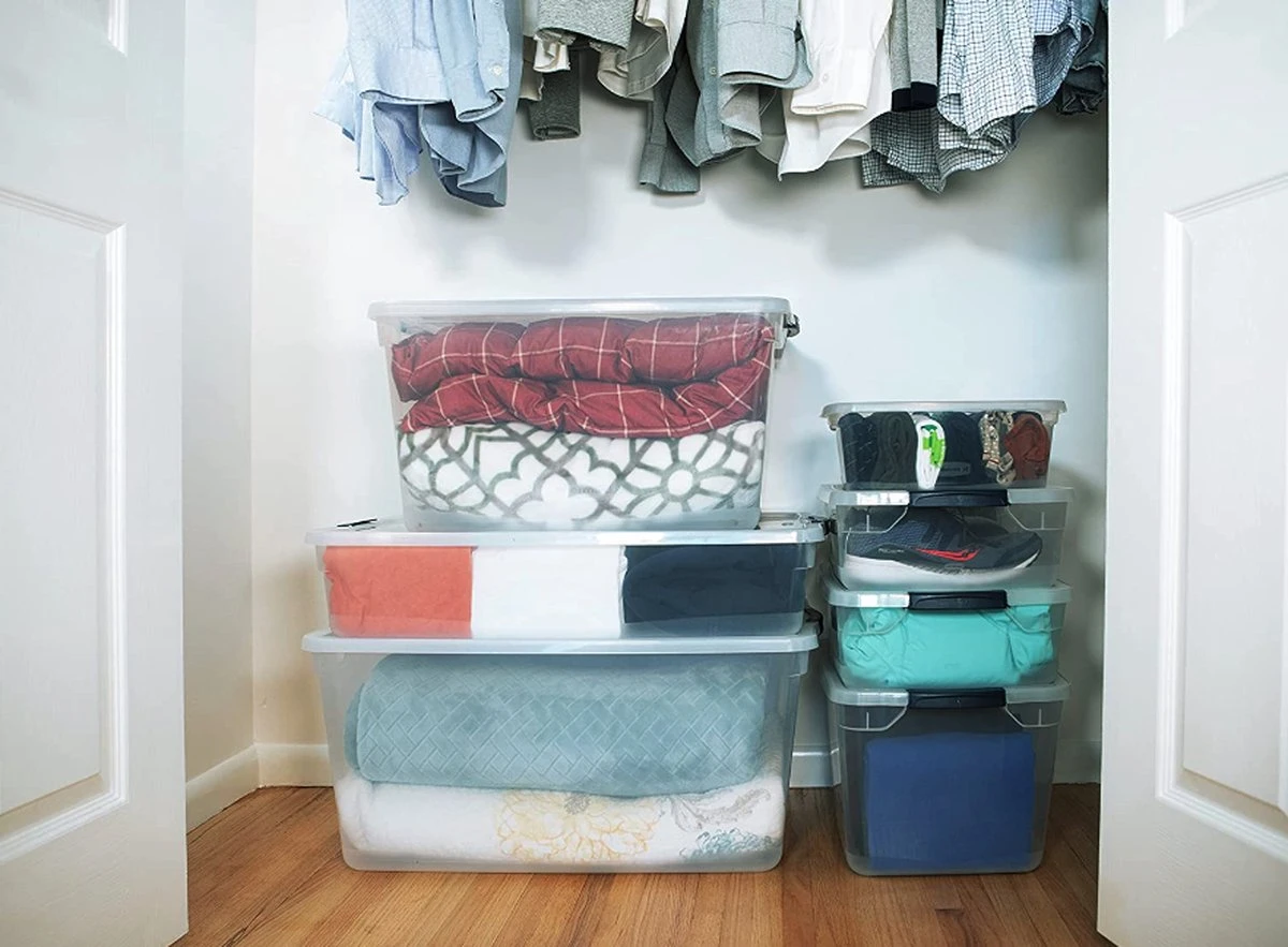 Dankzij het stevige deksel en pasvorm kunnen de opbergdozen op en in elkaar gestapeld (ongevuld) en gebruikt worden voor opslag. Hierdoor zijn het ruimtebesparende stapelbakken, die zonder veel extra ruimte opgeborgen kunnen worden (bijv. in de berging of als opbergdoos in de kinderkamer)