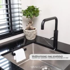 Mivalo® RVS Vaatdoekhouder – Aanrecht Organiser – Gootsteen Organizer – Mat Zwart
