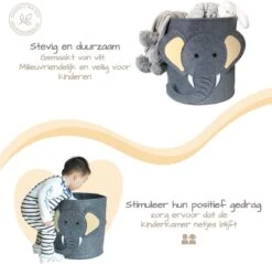 Speelgoedmand Kinderen – Opbergmand Kinderkamer – Speelgoed Opbergen – Speelgoedkist – Olifant