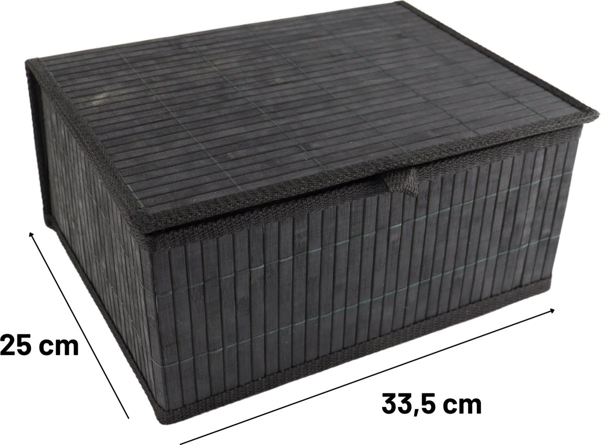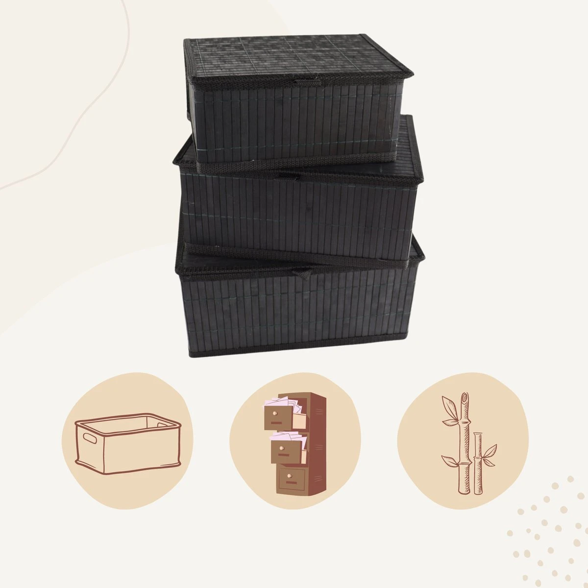 De Mandenset van 3 stuks is bedoeld voor het opbergen van spullen en wordt geleverd in verschillende maten. De opbergmanden zijn gemaakt van bamboe en zwart van kleur.