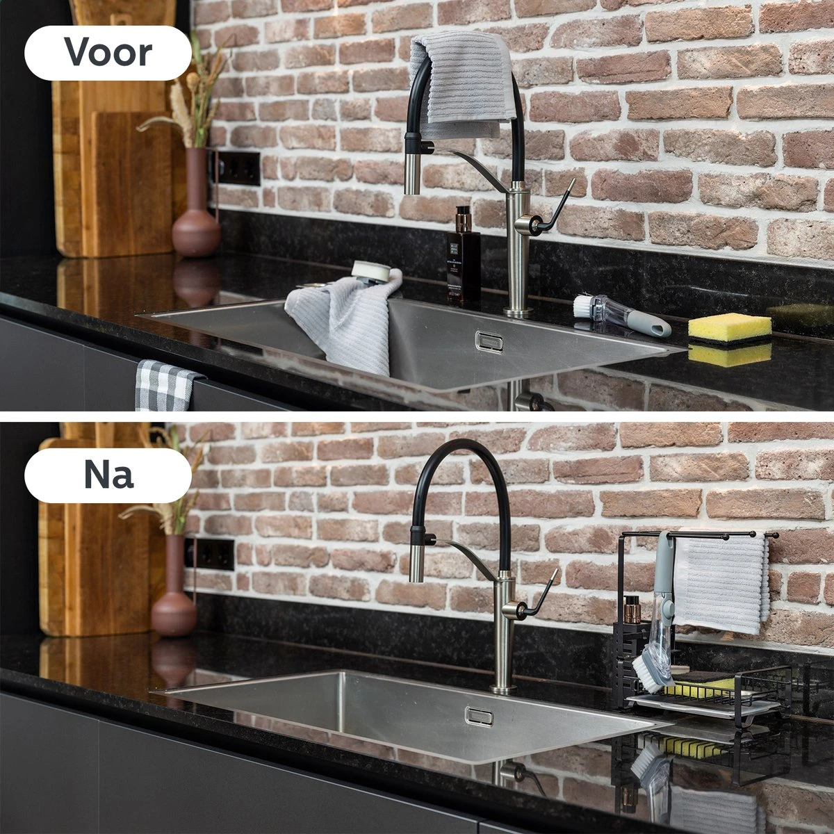 Wil jij een opgeruimd en hygiënisch aanrecht? Ben jij op zoek naar een aanrecht organiser met een stijlvol design? Met deze aanrecht organiser is je aanrecht niet langer rommelig, maar verandert het in een schoon en overzichtelijk deel van de keuken! Deze aanrecht organiser van Organess is een must have!