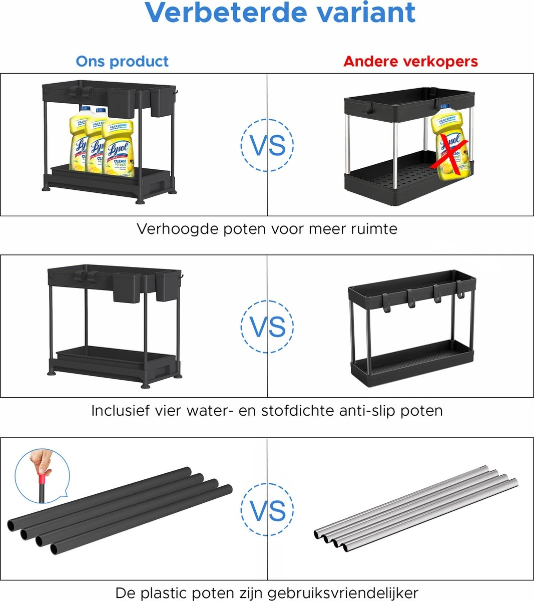 Ervaar zelf de rust van een opgeruimde gootsteenkast of keuken. Wacht niet langer en bestel vandaag nog deze organizer.