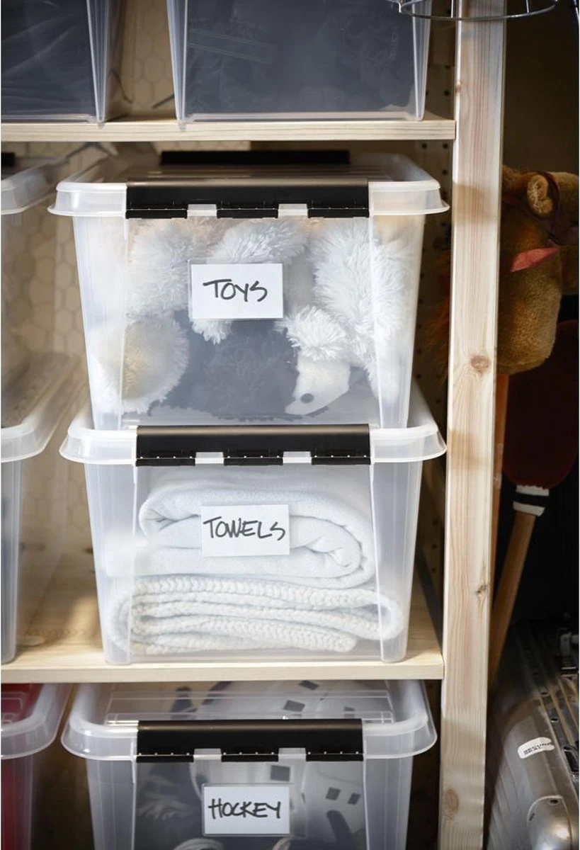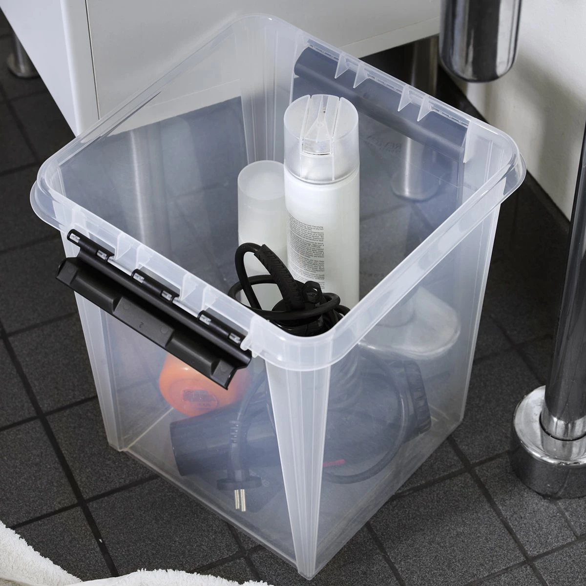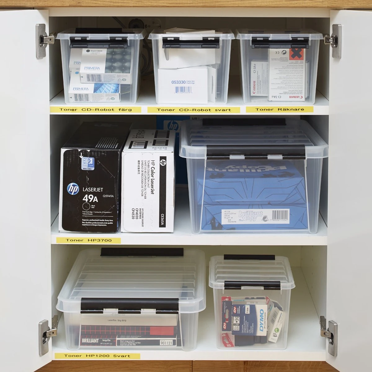 Deze ruime opbergboxen met deksel zijn geschikt voor allround opslag in een kast, gang of berging. Je kunt gemakkelijk de inhoud zien en daardoor alles goed indelen per categorie. Ook kun je gebruik maken van de label houders die je er los bij kunt bestellen.