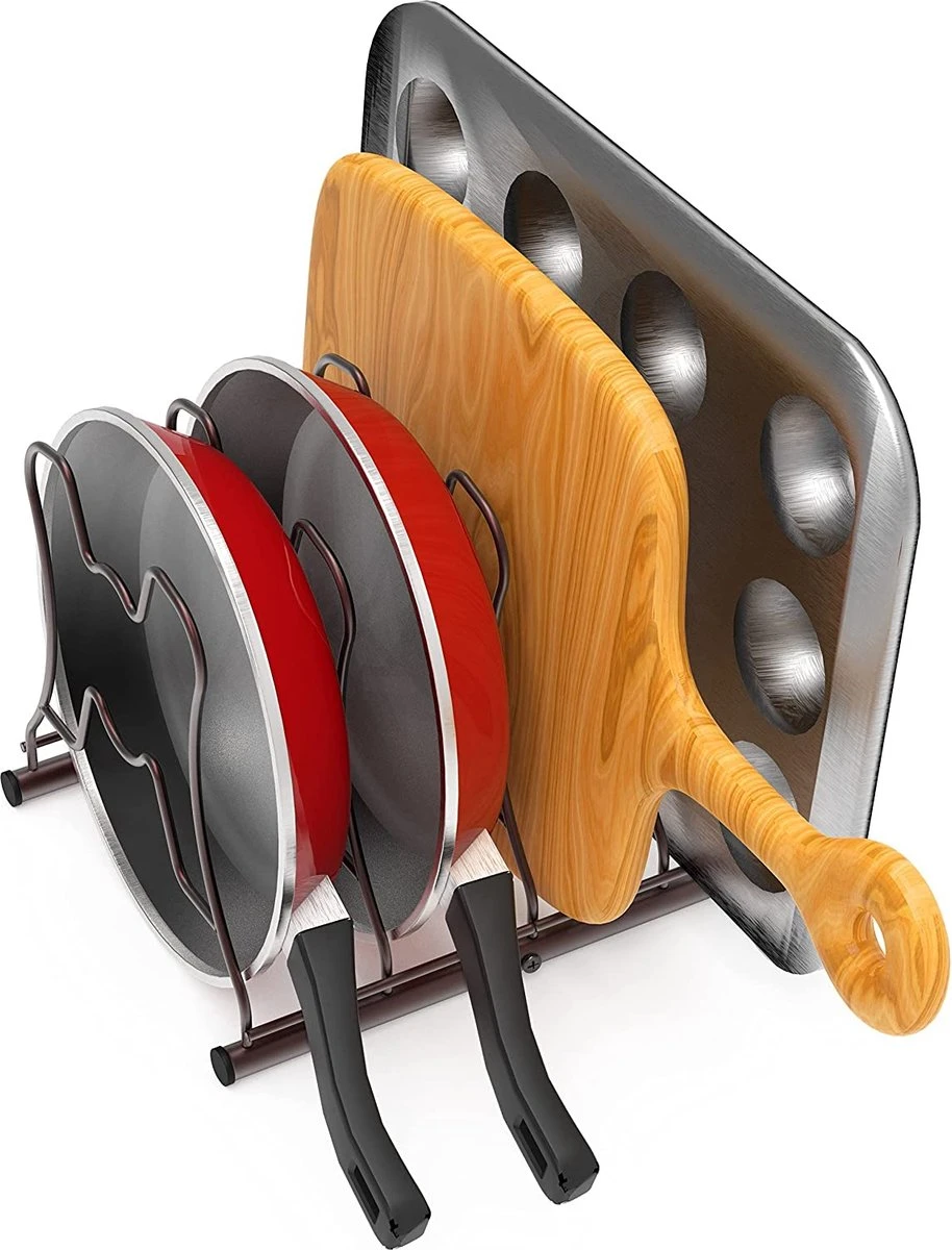 Worstel je nog steeds met het ordenen van al je pannen en deksels? Dan biedt dit opbergrek de oplossing! Het is een ruimtebesparend en geoptimaliseerd opbergsysteem voor pannen en deksels en biedt de volgende voordelen: