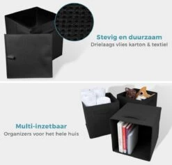 LifeGoods Lade Organizer Kast En Badkamer – 8 Stuks – Multi-inzetbaar – S/M/L – Grijs En Zwart Print