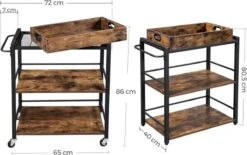 MIRA Home – Serveerwagen – Keukenrek – Opbergrek – Industrieel – Bruin – 65x40x86
