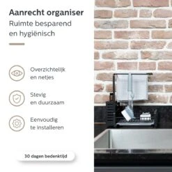 Organess®- Vaatdoekhouder – Aanrecht Organiser – Aanrecht Organizer – Gootsteen Organiser – Gootsteen Organizer – Incl. Premium Afwasborstel – Keuken Organizer – Sponshouder – Sponshouder Gootsteen – Aanrechtbakje -RVS – Zwart