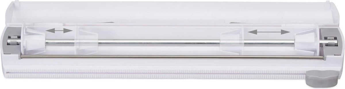 De handige rolhouder in set van 2 stuks is een ideale keukenhulp. De rollenhouder overtuigt doordat hij eenvoudig te gebruiken is. Leg aluminium- of vershoudfolie in de houder, trek de gewenste lengte eruit en beweeg het grijze mesje naar de andere kant. De folie is nu netjes en glad afgesneden. Dankzij de rolhouder hoef jij je niet langer zorgen te maken over ingescheurde of vastklevende folie.