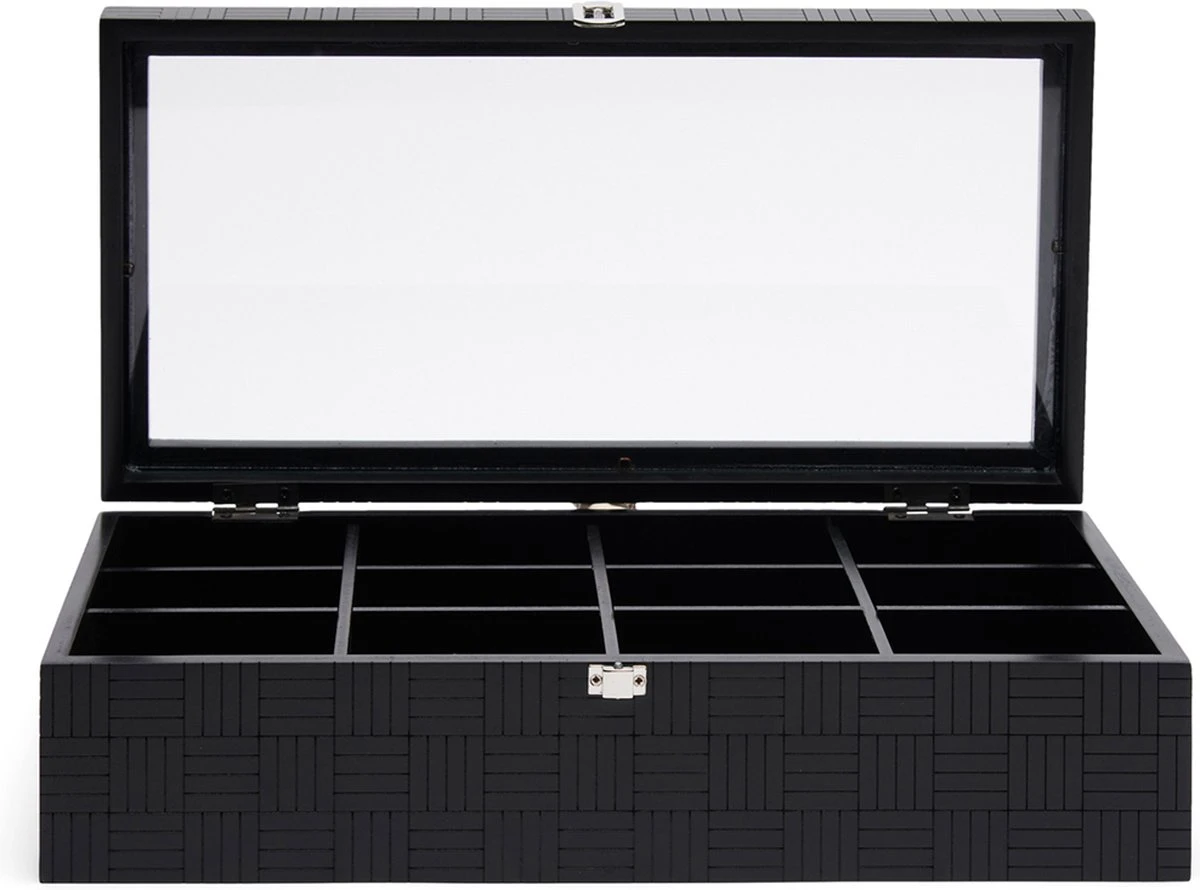 Riviera Maison Theedoos Glazen Deksel, 12 Vakken, Opbergbox, Organizer, Woonaccessoire, Decoratie – Soho Display Box – Zwart – MDF, Glas