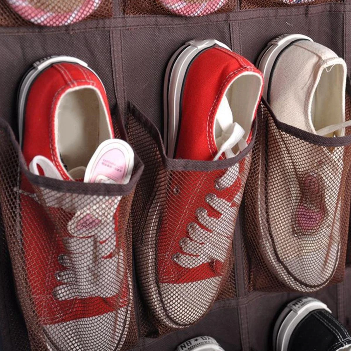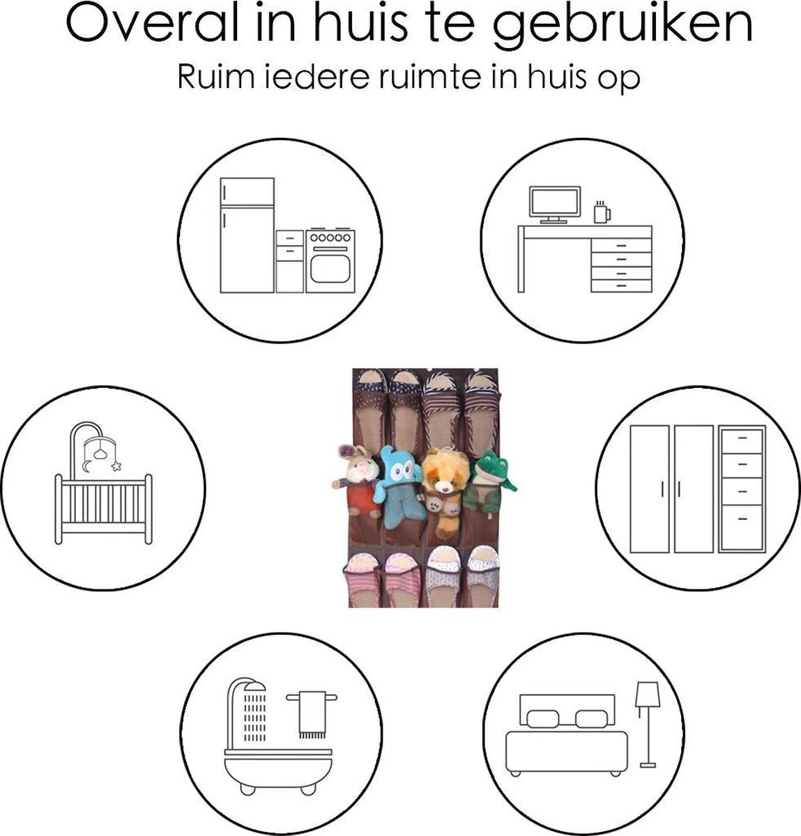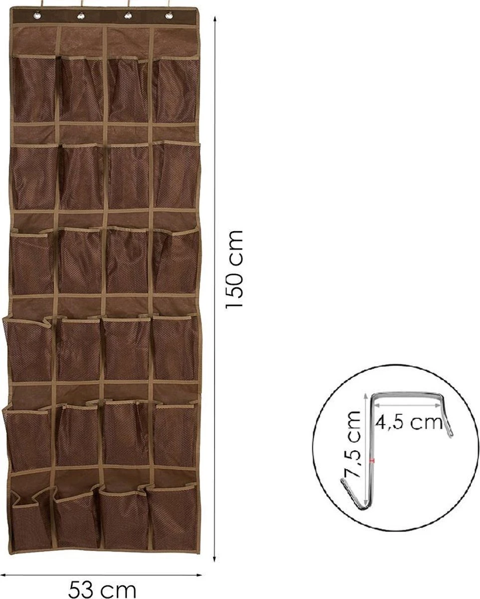 Deze schoenenzak kan met behulp van de deurhaken worden opgehangen aan de deur of in je kledingkast. De zak heeft 24 vakjes. Ideaal om je schoenen te beschermen tegen vuil, stof, vocht en bacteriën. Ook handig om sokken, kleding enz. op te bergen. Daarnaast biedt deze schoenenzak overzicht, zodat je ook de schoenen die je niet vaak draagt nooit uit het oog verliest.