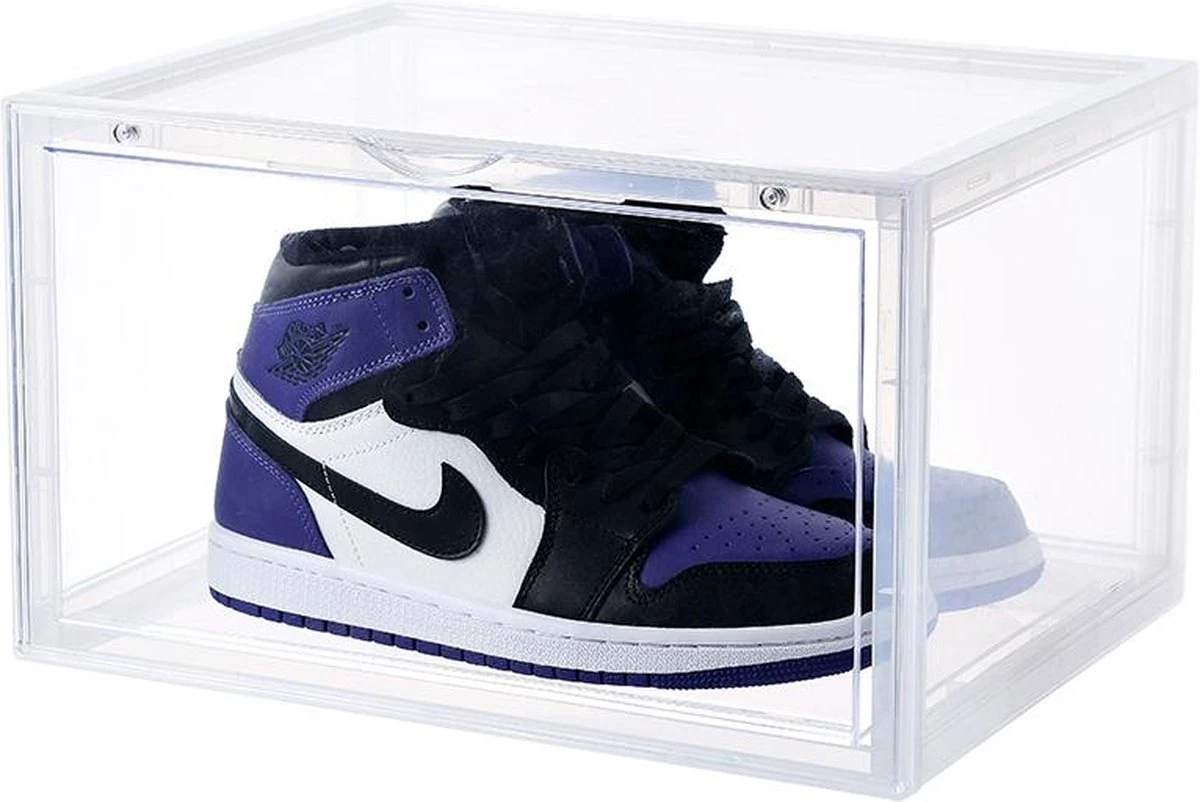Simpele sneakers en schoenen passen in deze sneakerbox, maar ook hogere sneakers zoals Jordans. Afmetingen: 36cm breed, 29cm lang, 22cm hoog.