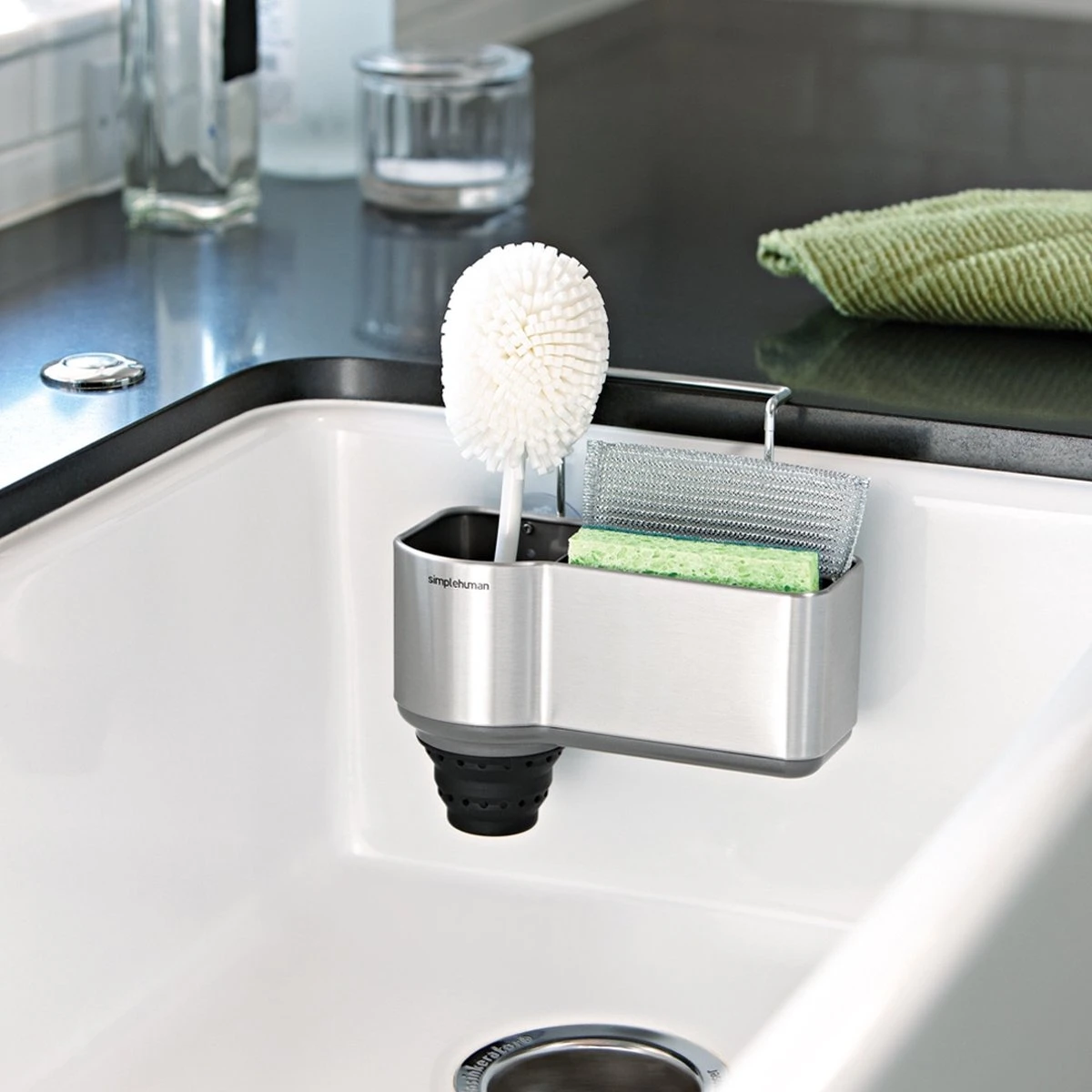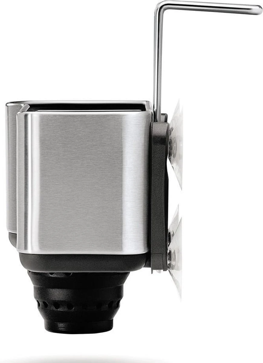 De hoofdgedachte van Simplehuman is om het dagelijks leven in huis makkelijker te maken. Daarom noemt deze fabrikant zijn producten “gereedschappen voor efficiënt wonen”. De producten van Simplehuman zijn zoals de naam het zelfs zegt eenvoudig, maar ook functioneel en van goede kwaliteit. Simplehuman biedt een breed assortiment sensorprullenbakken, prullenbakken die open gaan door je hand lichtjes over de deksel te bewegen. Zo hoef je de prullenbak nooit meer aan te raken! Daarnaast biedt Simplehuman verschillende afvalzakken en keukenorganisers aan.Deze houder voor bij uw wasbak is speciaal ontworpen om uw afwasgereedschap netjes op te bergen. Naast ruimte voor uw afwasborstel is er ruimte voor afwasmiddel of een spons. De houder is eenvoudig te bevestigen door middel van 4 sterke zuignappen.De houder is uitgevoerd in RVS met kunststof accenten en is gemaakt van duurzaam materiaal welke niet aangetast kan worden door water. Simple Human geeft op dit product 5 jaar garantie.