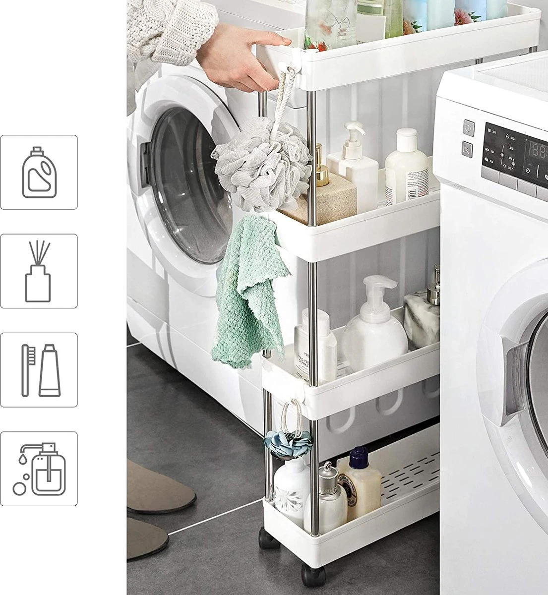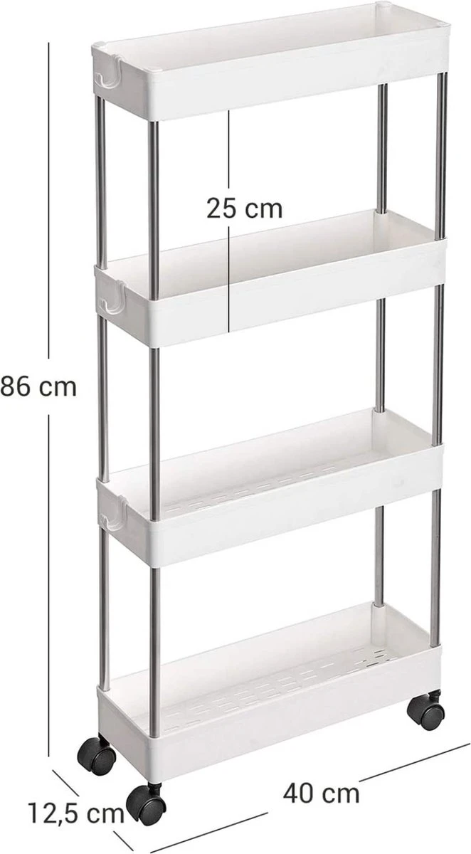 Maakt u zich nog steeds zorgen over onvoldoende ruimte in de keuken? Deze uitschuifbare trolley van 12,5 cm diep kan kleine ruimtes optimaal benutten en de organisatie maximaliseren.