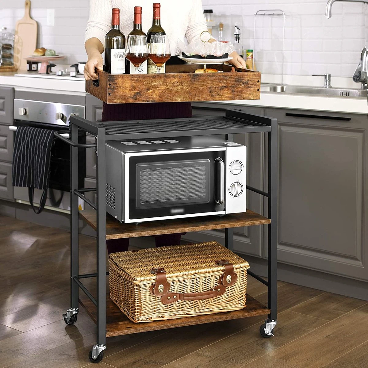 Keukentrolley, serveerwagen met vergendelbare wielen, industrieel design Vintage bruin