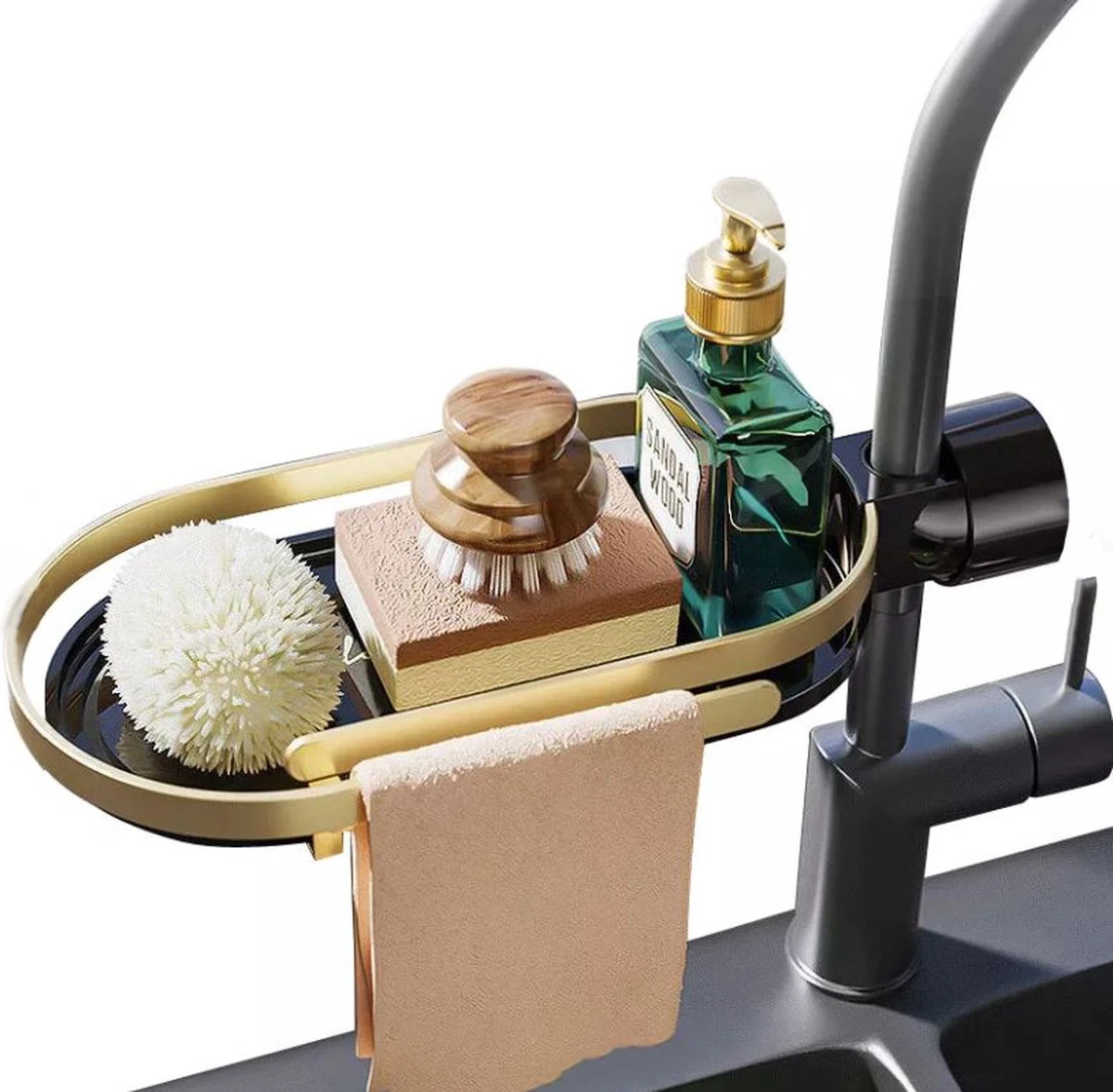 Klaar met al die rondslingerende sponsen, afwasborstels, vaatdoekjes en afwasmiddeldispensers? Dan is het tijd voor een gootsteen/aanrecht organizer! Met de organzier berg je al je spullen op een plek op en liggen ze nooit meer in de weg op je aanrecht of in de gootsteen. Je bevestigt de organzier gemakkelijk in een handomdraai aan de hals van je keukenkraan. Hierdoor hangt de organizer niet in de weg tijdens het afwassen, zoals het geval is bij organizers in je gootsteen.