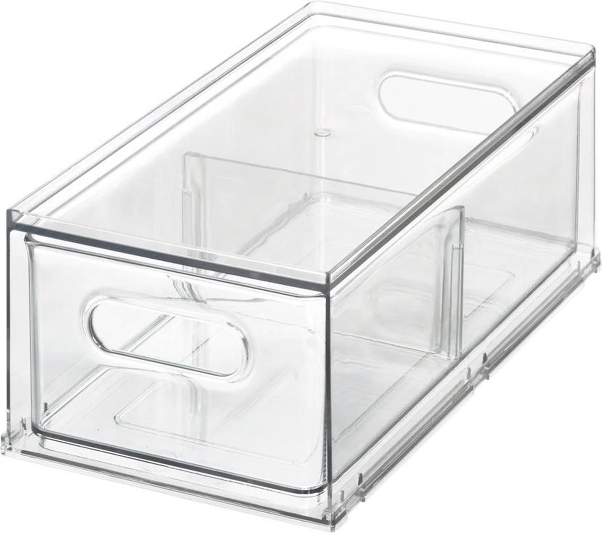 Door de uittrekbare lade kun je snel bij de producten die je nodig hebt. Het verwijderbare verdeelschot zorgt dat je extra sorteervakken kunt creëren voor producten. De koelkast organizer is stapelbaar en gemakkelijk te combineren met de andere producten van The Home Edit. De koelkast bak is van duurzaam, transparant Resipreme-kunststof. Hierdoor zijn de producten in de bak altijd zichtbaar. De breedte van de bak is 17 cm, de diepte 32 cm en de hoogte 12 cm. Deze koelkast bak is BPA vrij.