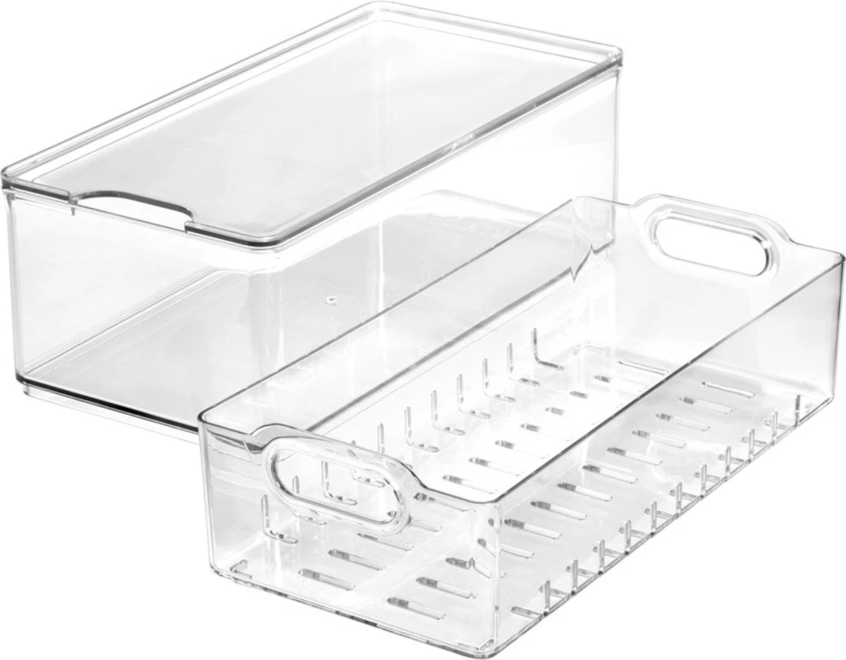 Met de koelkast bakken voor fruit van The Home Edit berg jij je fruit gemakkelijk en hygiënisch op. De koelkast bakken hebben uitneembare opvangbakjes met gaten. Hiermee houd je het vocht gescheiden van het fruit, waardoor het langer vers blijft.