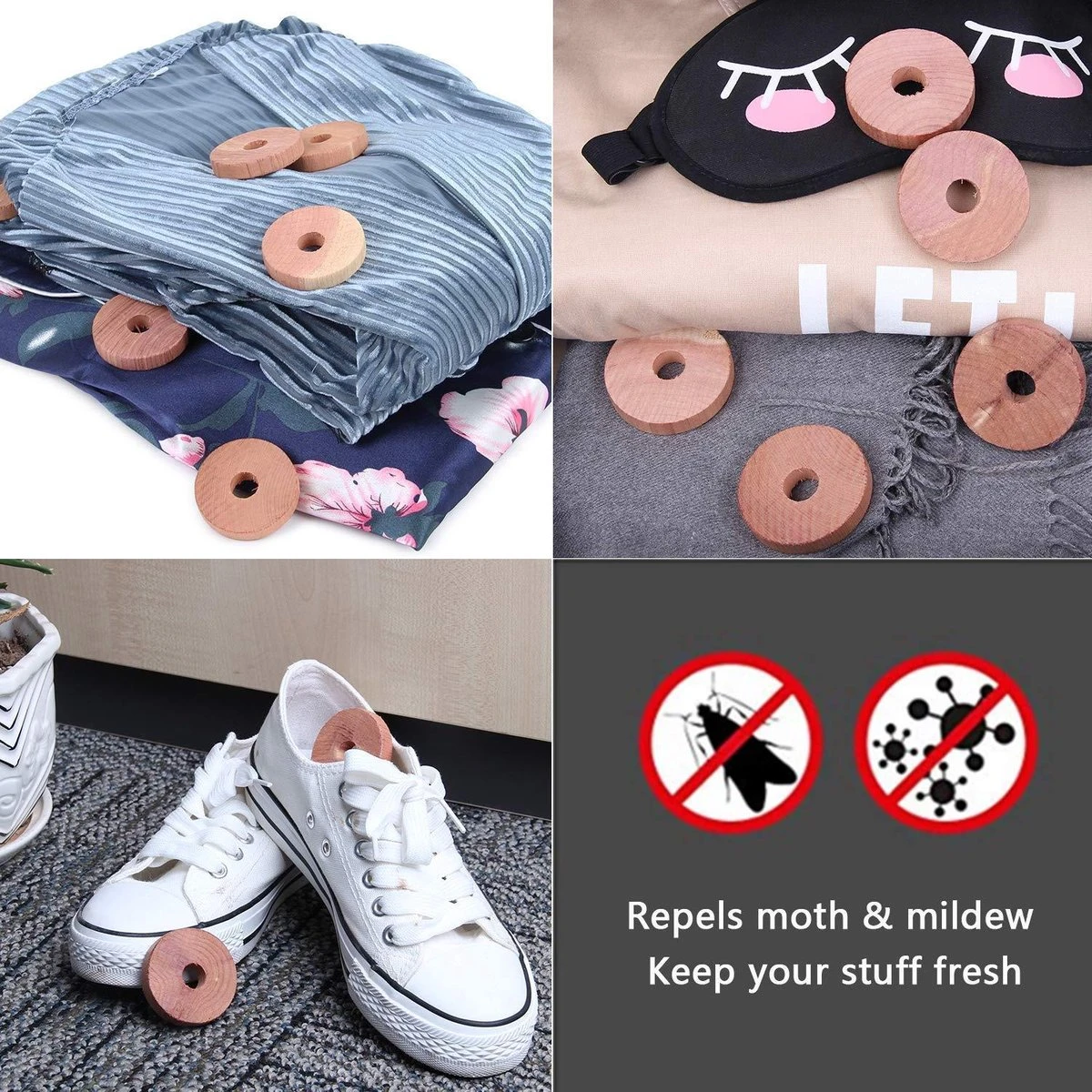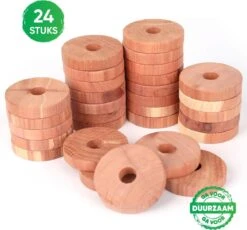 Tiny Panda Ceder ringen zijn gemaakt van 100% natuurlijk aromatische cederhout dat geoogst wordt uit hernieuwbare bossen (milieuvriendelijk). De ceder is veilig en zonder toevoeging van chemicaliën. Alle ceder ringen zijn gemaakt van de beste kwaliteit cederhout, waarvan 85% kernhout. De ringen zijn zo gepolijst dat deze geen krasse op de kleding kan geven. De frisse geur is afkomstig van zijn natuurlijke aromatische oliën, zodat je kleren fris ruiken en je meest waardevolle kleding beschermt wordt. Ideaal voor garderobe, kasten, schoenenkasten, auto’s en andere plaatsen. Houd uw kleren fris en geurig. De Ceder ringen zijn een noodzaak voor uw huis. Hiermee zal uw garderobe langer mooi en fris blijven.