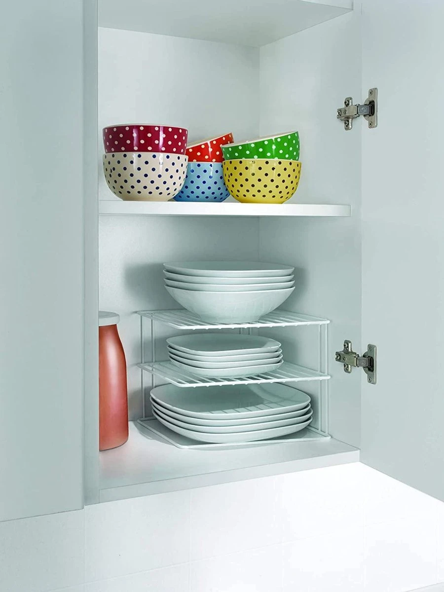 Met dit bordenrekje met twee niveaus benut je de beperkte ruimte optimaal. Je kunt er meerdere borden en schaaltjes op zetten en hoeft geen grote stapel borden af te stapelen om bij het juiste bord te komen.